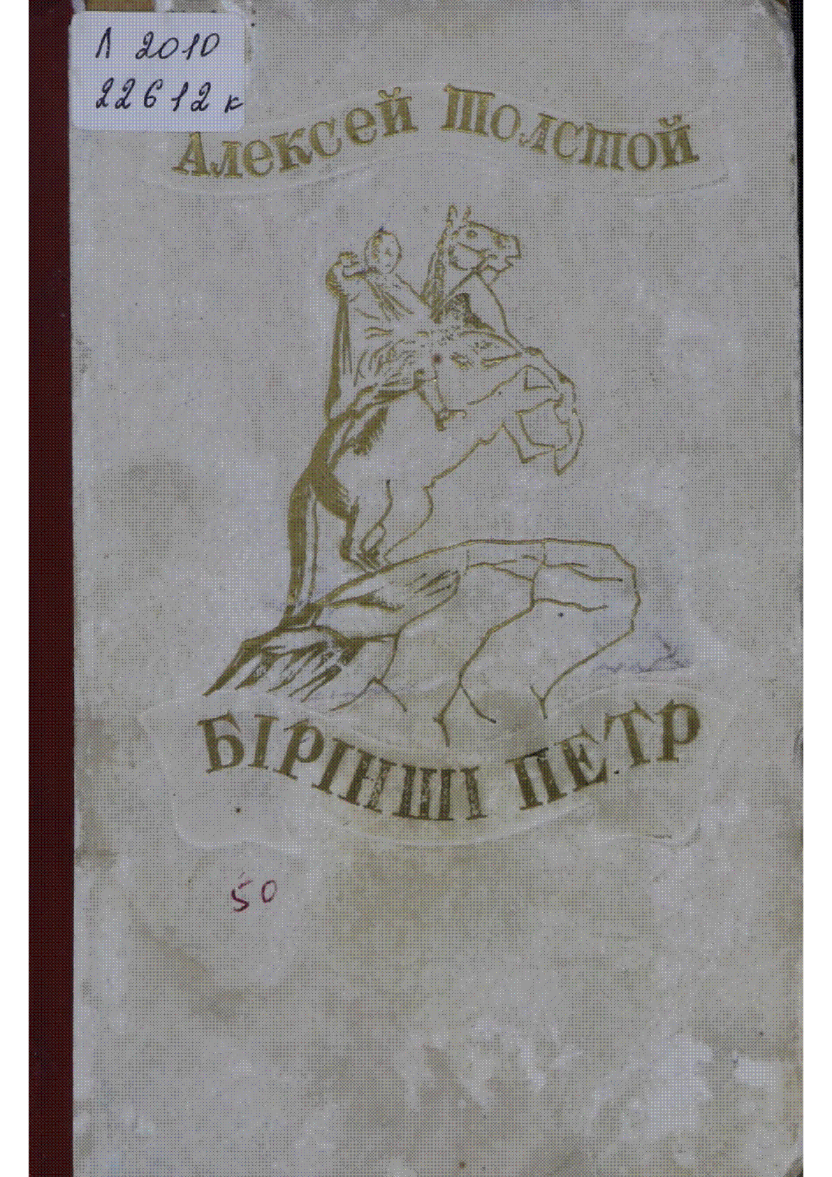 Бірінші Петр [Мәтін] : роман / А. Н. Толстой- Алматы : Қаз. мем. көркем әдеб.бас. , 1950.– 20000 дана . (мұқ.) 1-кітап .– 438, [1] б. (мұқ.) : 5 тг.
