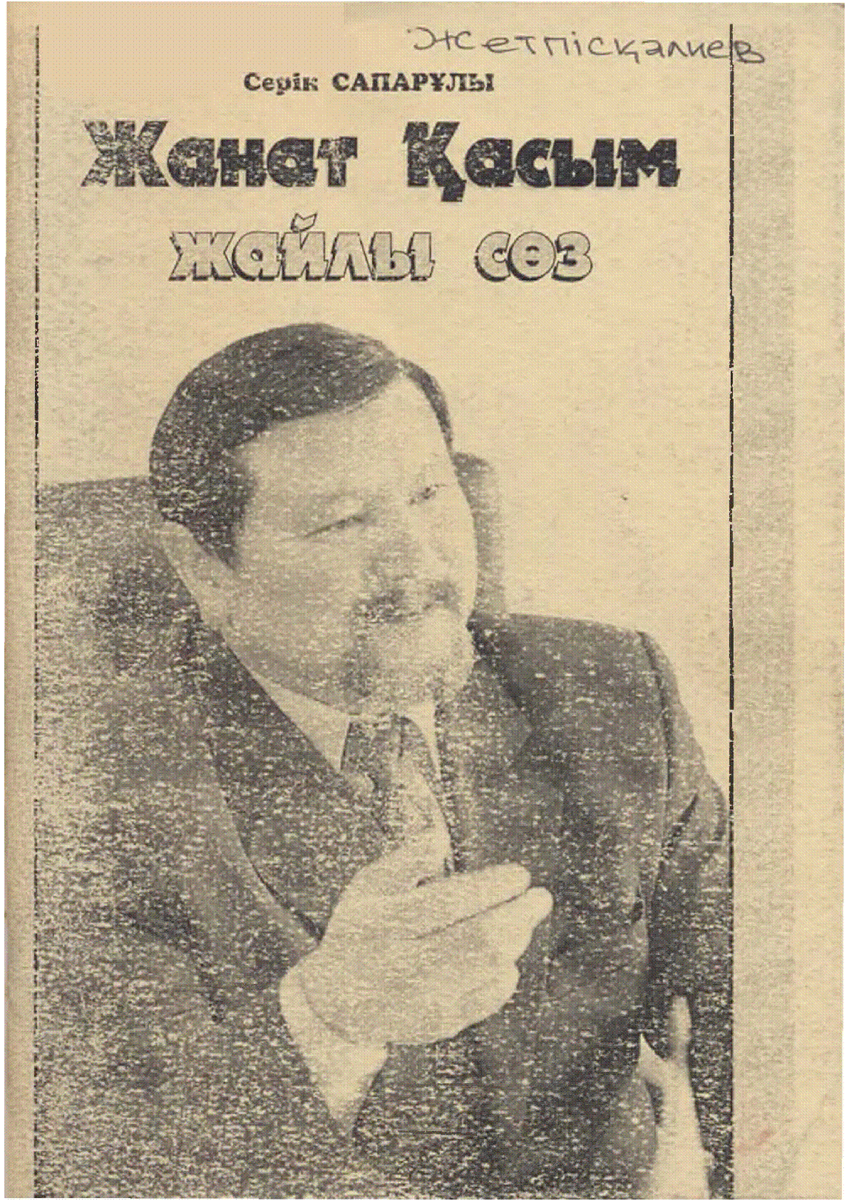 Жанат Қасым жайлы сөз [Мәтін] : деректі повесть / С. С. Жетпісқалиев ... – Көкшетау : [Б. ж.], 2004. - 108 б., фотосуреттер;– (Алаш үні кітапханасы. - Мұқ.: автор Сапарұлы С. . . – 1000 дана – 9965-721-15-7 : 300 тг.