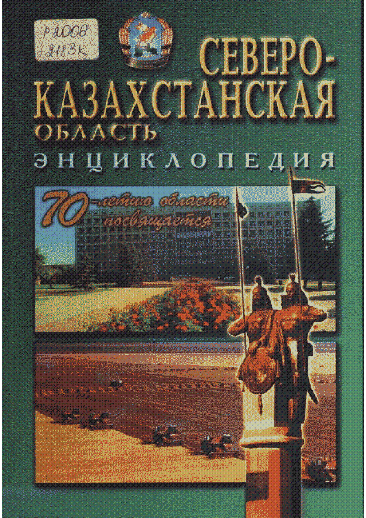 Северо-Казахстанская область [Текст] : энциклопедия / . – 2-е изд., доп. .. – Алматы : Арыс, 2006. - 672 с., [42] л. ил., ил., карт.; . . – 9965-17-306-0 (в пер.)