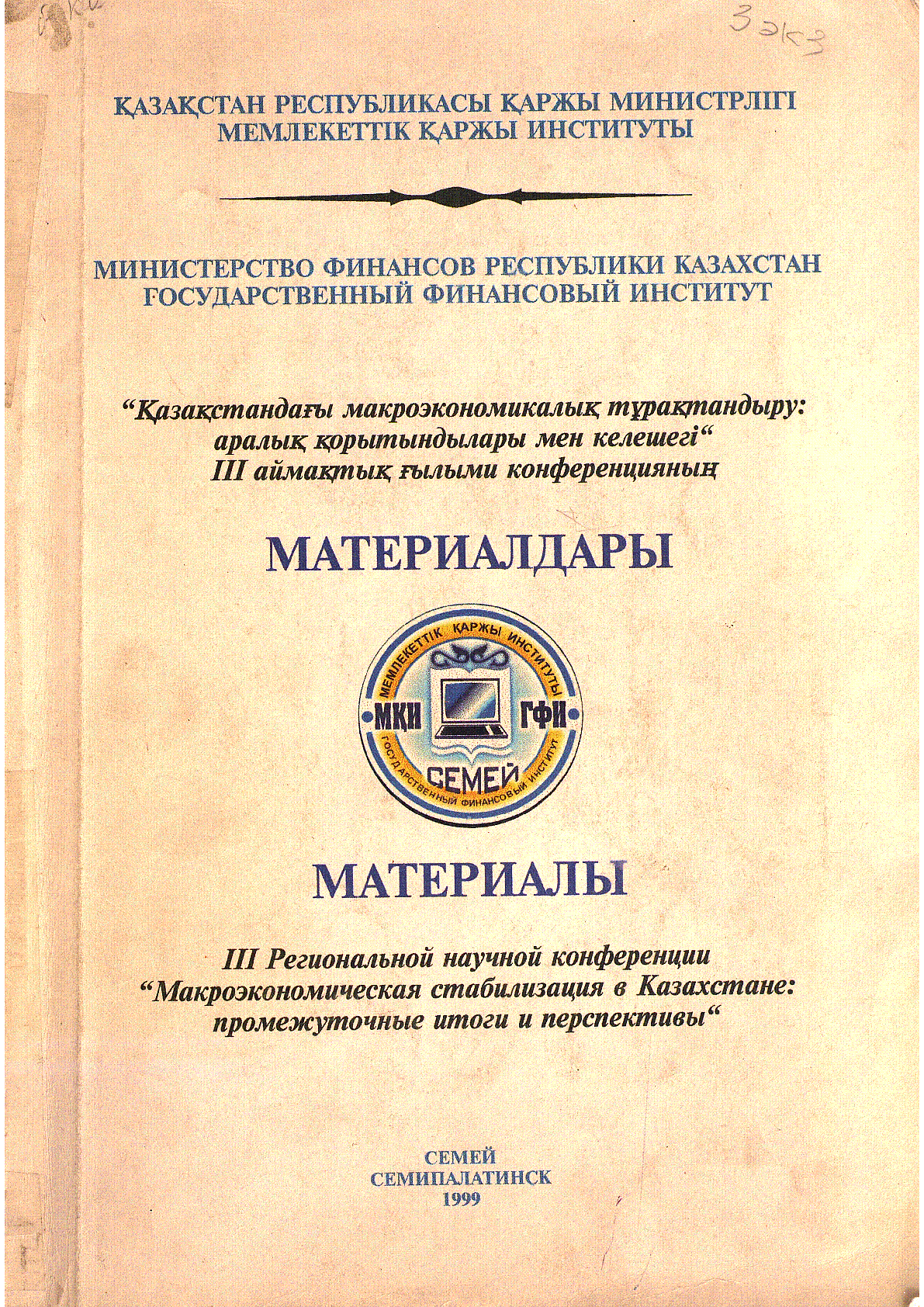 Макроэкономическая стабилизация в Казахстане: промежуточные итоги и перспективы : Материалы III региональной научной конференции / ... – Семей : [Б. и.], 1999. - 297 с. - Текст на рус. и каз. языках . . – 9965-426-24-4