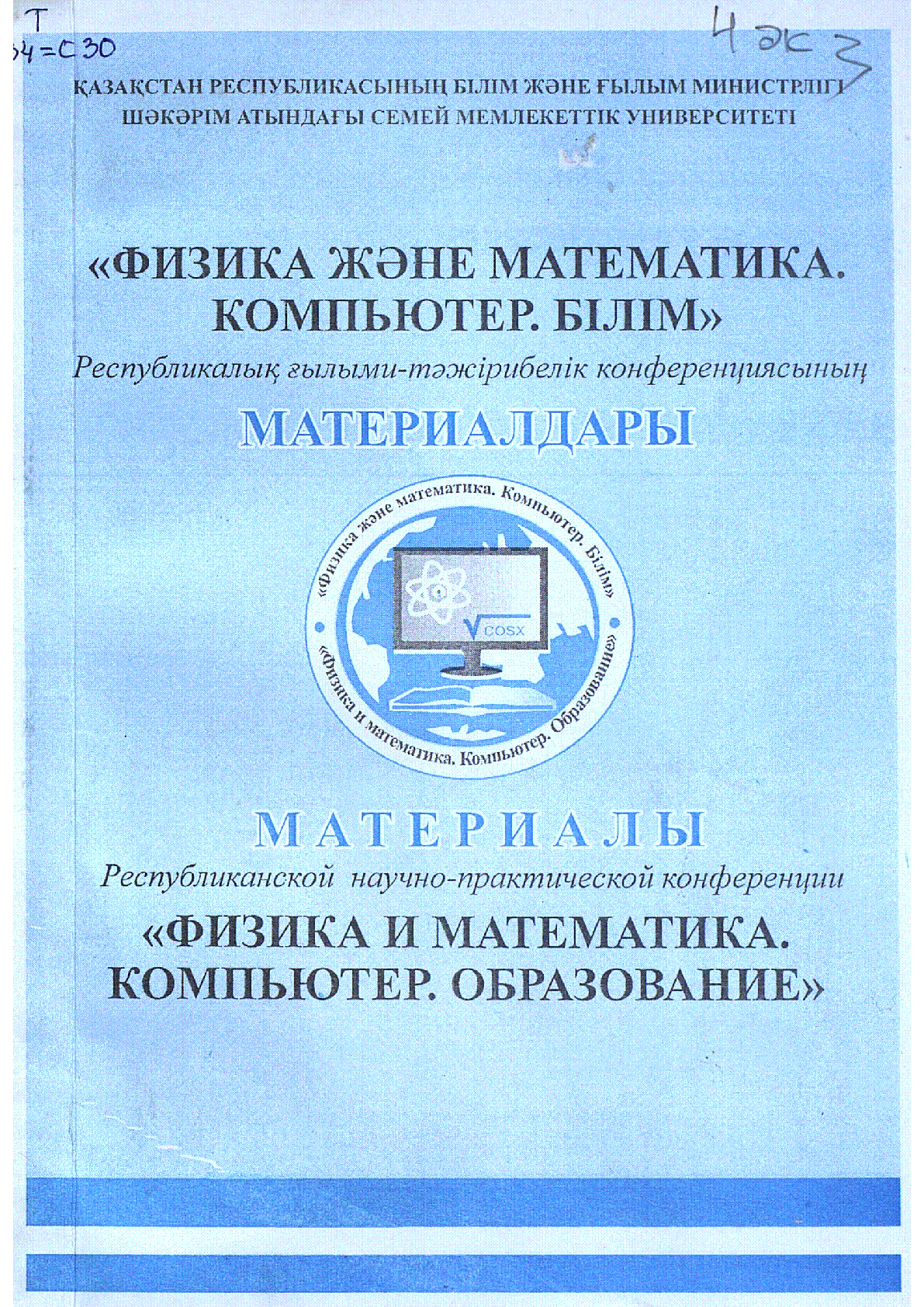 Физика и математика. Компьютер. Образование : Республиканская научно-практическая конференция (9-10 окт. 2008 г.) / ... – Семей : [Б. и.], 2008. - 292 с., ил.; - Текст на рус. и каз. языках . . – 9965-887-50-0