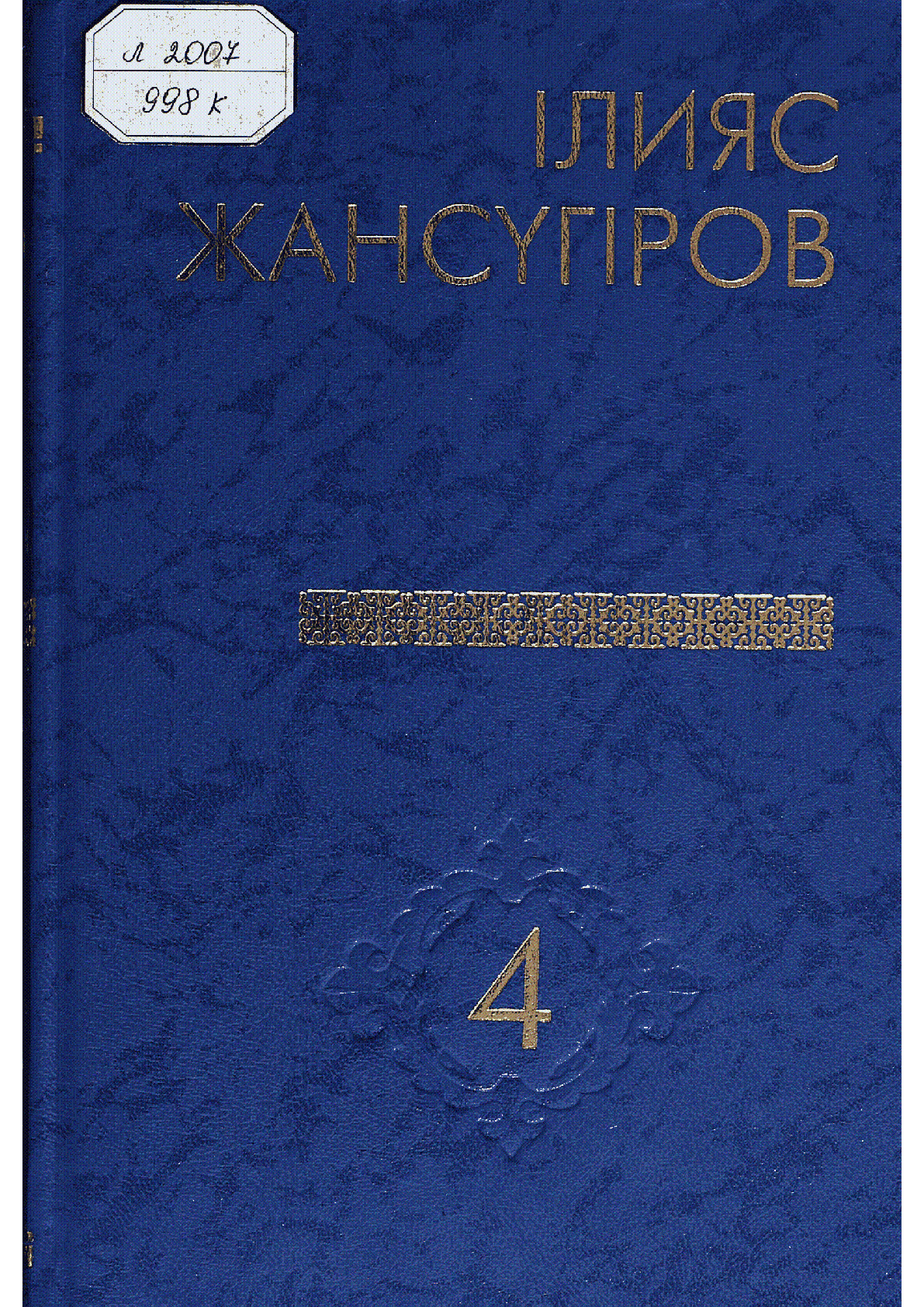 Көп томдық шығармалар жинағы [Мәтін] / І. Жансүгіров ; [басп. әзірл.: Е. Д. Далбағаев [ж. б.] ; ред. алқасы: Т. Кәкішев [ж.б.]]- Алматы : Қазығұрт , 2005. – 9965-22-022-0, – 2000 дана . – 9965-22-105-7 (4-т.) (мұқ.) - Тұрсынбек Кәкішұлы қоры . 4-том . Роман. Мақалалар– 311 б. (мұқ.) : 40 тг.