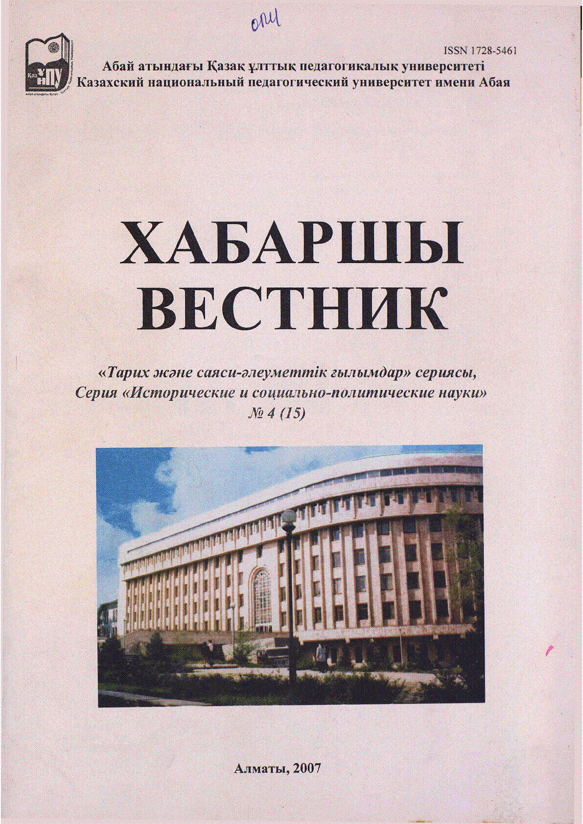 Хабаршы. "Тарих және саяси-әлеуметтік ғалымдар" сериясы / Абай атындағы Қазақ ұлттық педагогикалық университеті ; бас.ред. С.Т.Орумбаев. – Алматы : КазНПУ им.Абая, 2007.-№4. -