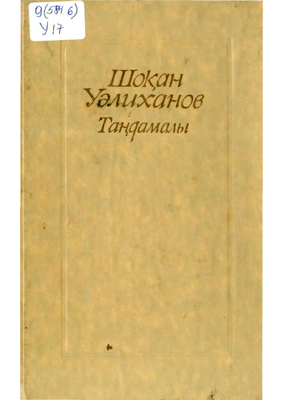 Таңдамалы [Мәтін] / Ш. Ш. Уәлиханов ; орысшадан ауд. Ә. Ипмағамбетов... – Алматы : Жазушы, 1980. - 412, [2] б. - Кеңес Нұрпейісұлының қоры. - Марал Хасен қоры . . – 10000 дана (мұқ.) : 50 тг.