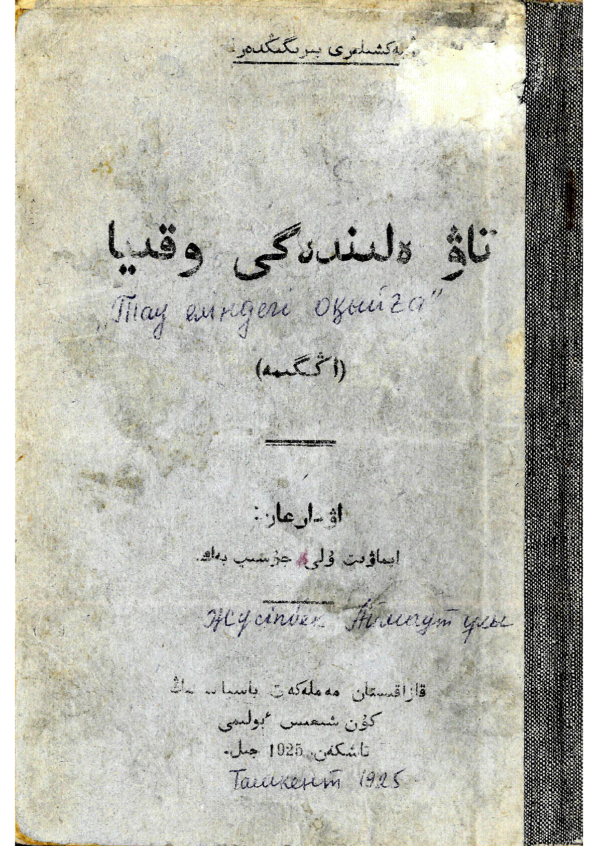 Тау еліндегі оқиға = تاۋ ەلىندەگى وقىيعا (اڭگىمە) [Мәтін] : әңгіме / С. Чуйков ; ауд. Жүсіпбек Аймауытұлы... – Ташкент : Қазақстан мемлекет баспасының күншығыс бөлімі , 1925. - 78 б. - Мәтін араб графикасымен жазылған . . – 3000 дана