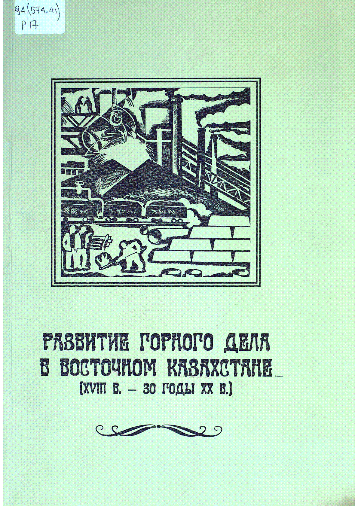 Развитие горного дела в Восточном Казахстане (XVIII в. - 30 годы XX в.) [Text], [Text] : Сборник документов / ; [отв. ред. А. А. Аубакиров ; сост.: Г. Т. Касымова [и др.]]... – Семей : [б. и.], 2008. - 458, [40] с., [4] л. ил.+ 16 вкл. . . – Имен. указ. : с. 404-413. - Геогр. указ.: с. 414-421. - Терминолог. указ.: с. 422-425. - Библиогр.: с. 436-438 . – 100 экз. : 100 тг.
