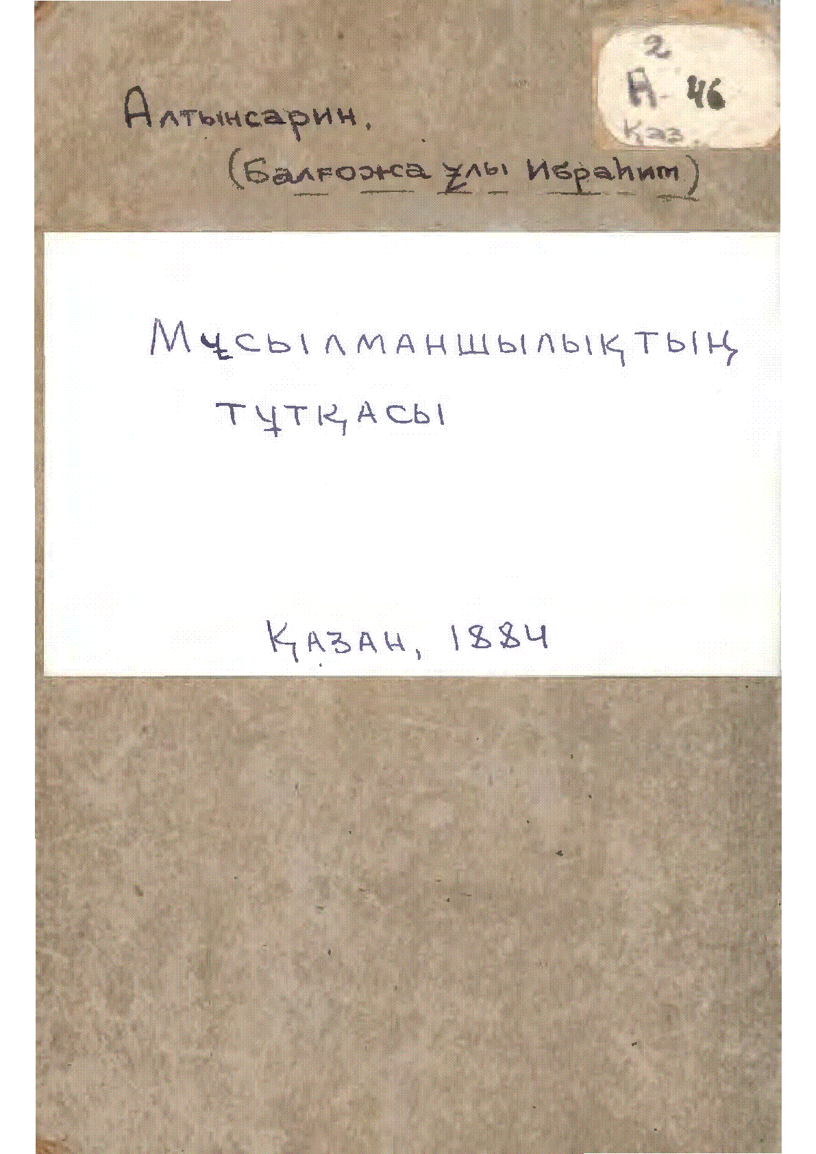 Мұсылманшылықтың тұтқасы = شرايط الاسلام [Мәтін] : Шараитул Ислам / Ы. Алтынсарин ... – Қазан : Қазан университетінің баспаханасы, 1884. - 76 б. - Мәтін араб графикасымен жазылған . .