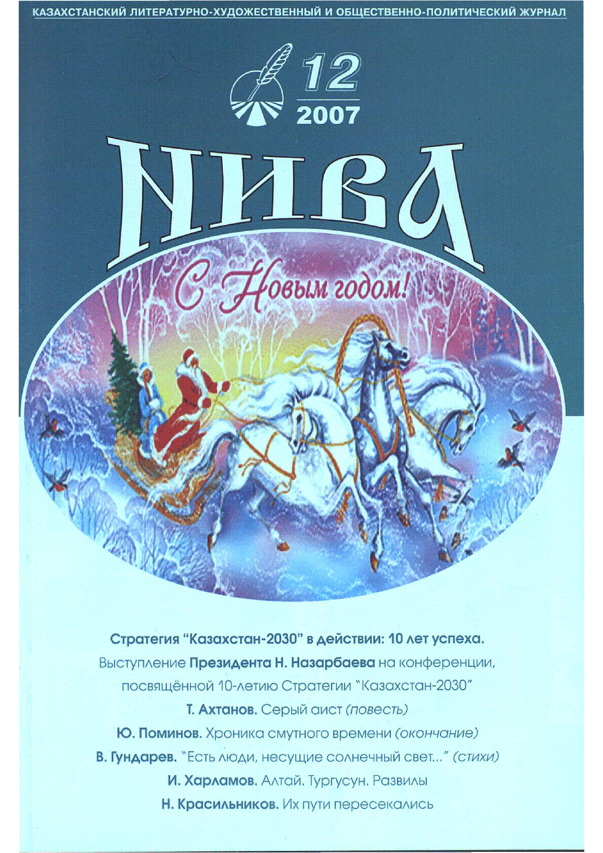 Нива [Text] / казахстанский литературно-художественный и общественно-политический ежемесячный журнал ; [гл. ред. В. Р. Гундарев ; ген. директор В. Г. Коченов]. – Астана : [б. и.], 2007. - .– 1000 экз..– 1 раз в месяц. - 1000 экз.
