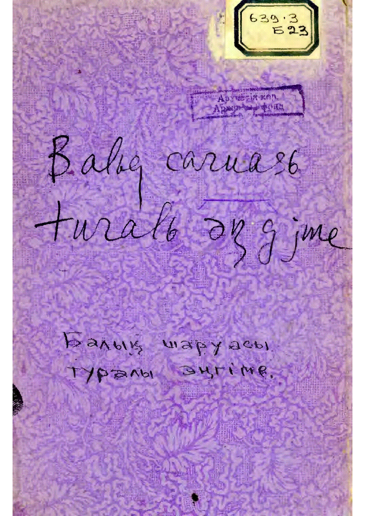 Балық шаруасы туралы әңгіме = بالىق شارىۋاسى تۇۋرالى اڭگىمە [Мәтін] / ... – Астрахань : Полиграф, 1929. - 126 б. 20,5х14,5 см. - РК; Араб графикасы. . . – 3000 дана