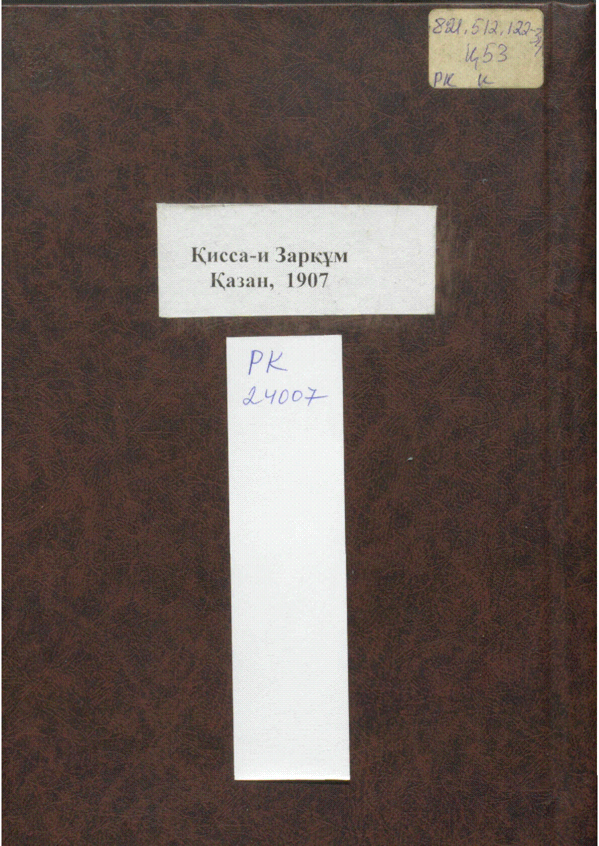 Қисса-и Зарқұм = قصهء زرقوم [Мәтін] : Шығыс әдебиетіне негізделген сюжет / ... – Қазан : Университет табиғханасы, 1907. - 67 бет - Мәтін араб графикасымен жазылған, "Мәдени мұра" бағдарламасы бойынша, Көшірме . .