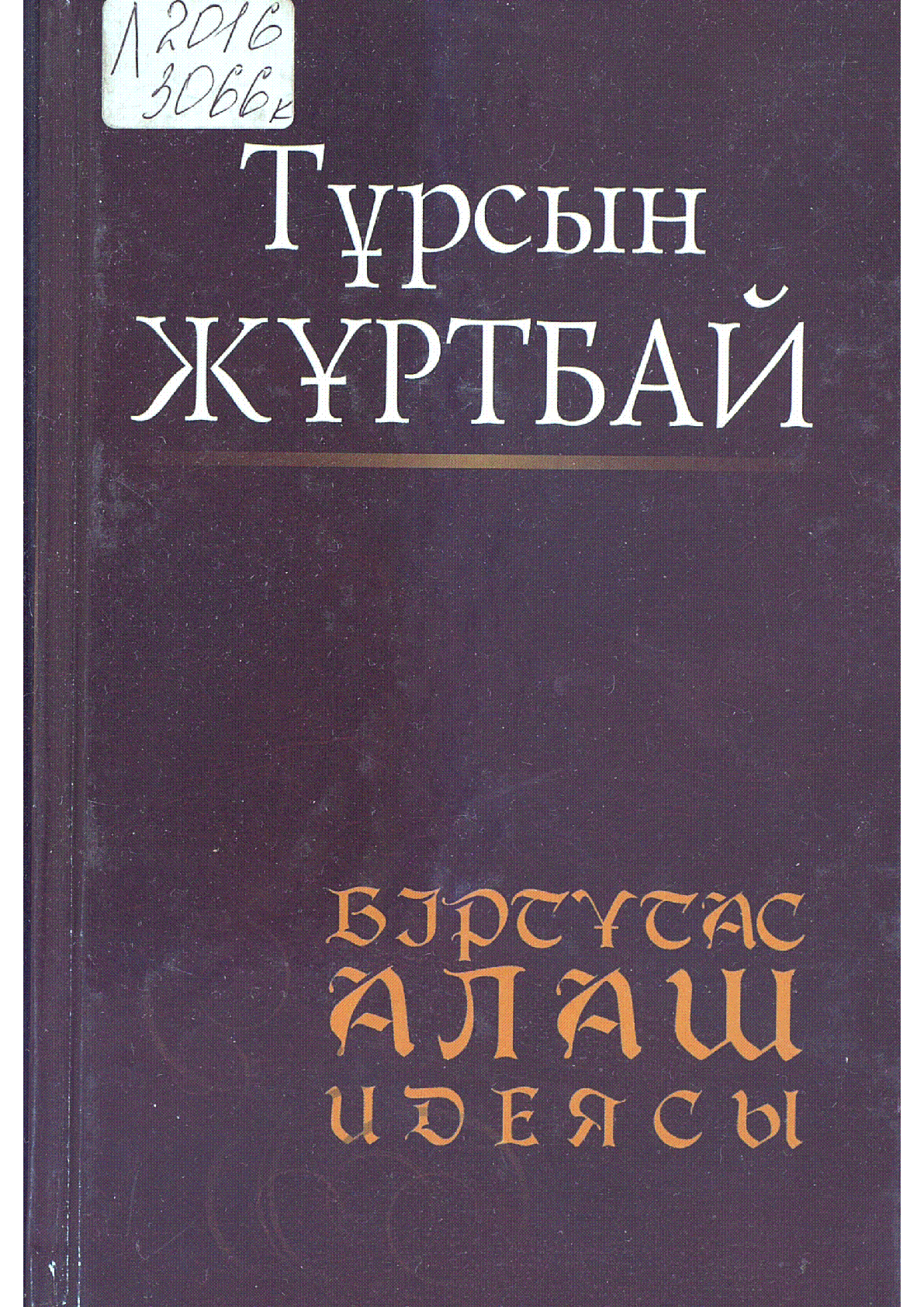 Біртұтас Алаш идеясы [Мәтін] : толғаныстар / Т. Жұртбай ; [ғылыми ред. Д. Махат]... – Алматы : Хантәңірі, 2016. - 378, [1] б. - Қазақстан Республикасы Мәдениет және спорт министрлігі "Мәдениет және өнер саласындағы бәсекелестікті жоғарылату, қазақстандық мәдени мұраны сақтау, зерделеу мен насихаттау және мұрағат ісінің іске асырылу тиімділігін арттыру" бағдарламасы ; "Әдебиеттің әлеуметтік маңызды түрлерін басып шығару" кіші бағдарламасы бойынша жарық көрді . . – 2000 дана – 879-101-02-0399-7 (мұқ.) : 7500 тг.