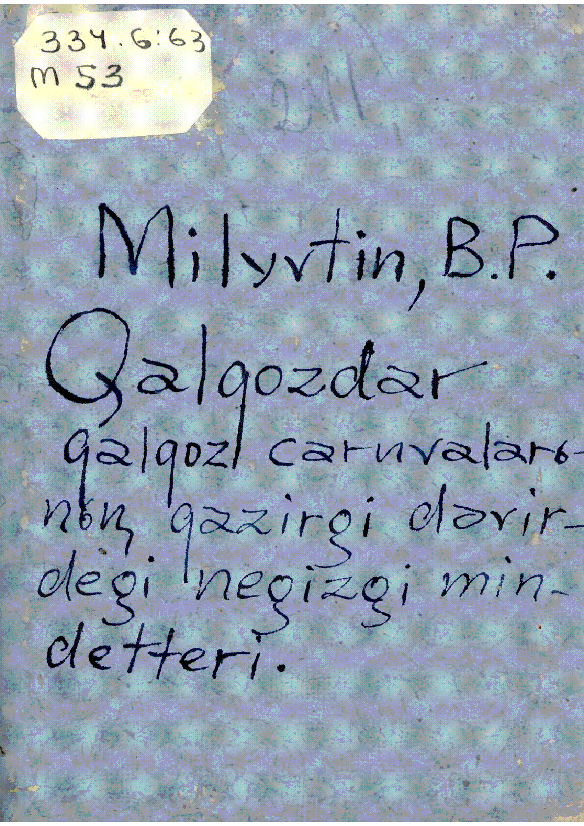 Колхоздар [Text] : Колхоз шаруаларының қазіргі дәуірдегі негізгі міндеттері / Милютин В.П. ... – Қызылорда : Қазақстан баспасы, 1931. - 36 б. - Латын графикасы. . . – 5000 дана