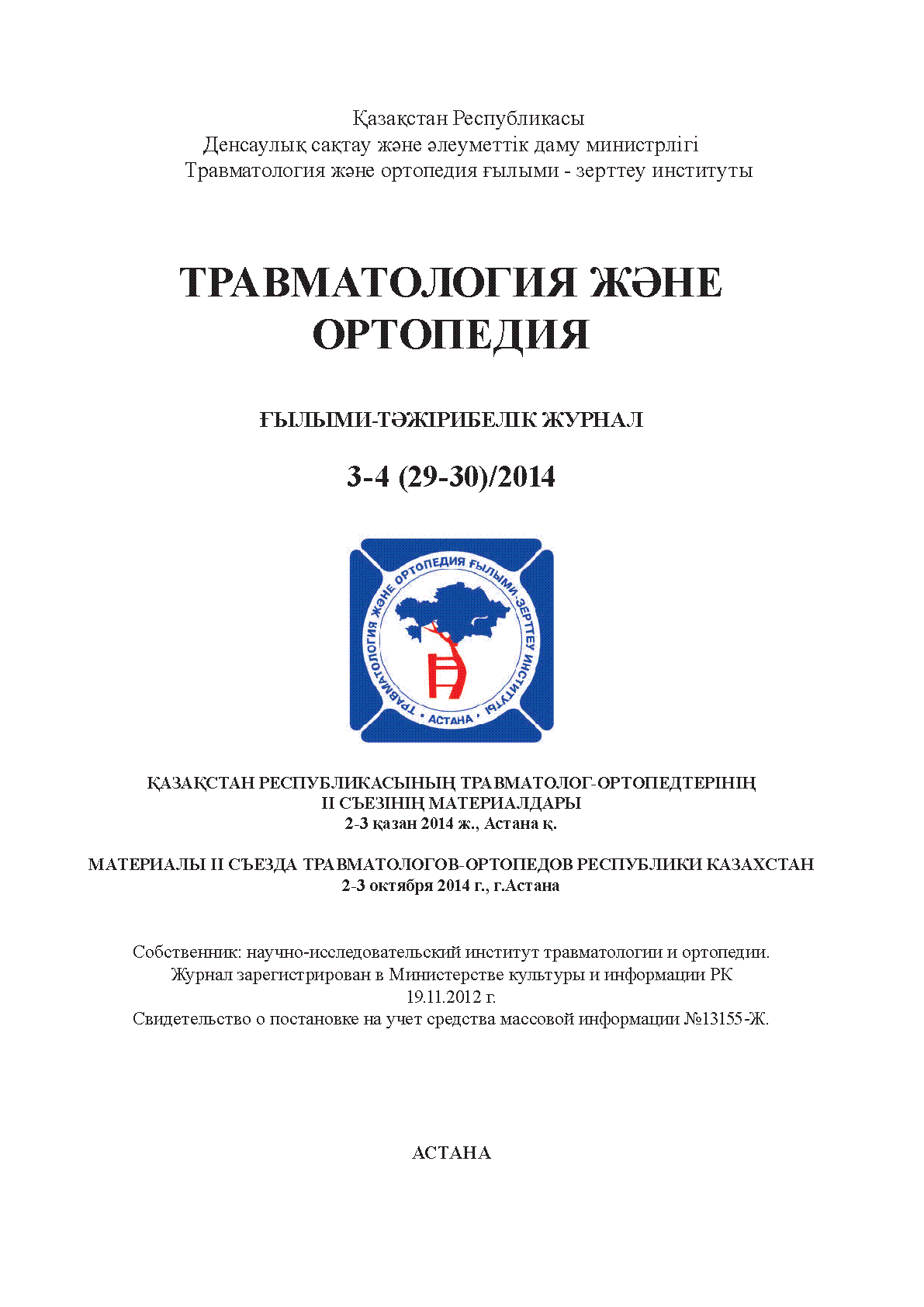 Травматология және ортопедия. - Астана, 2014. - № 3-4 (29-30). - 450с. [Текст] : ғылыми-тәжірибелік журнал=научно-практический журнал / ISSN<br>
