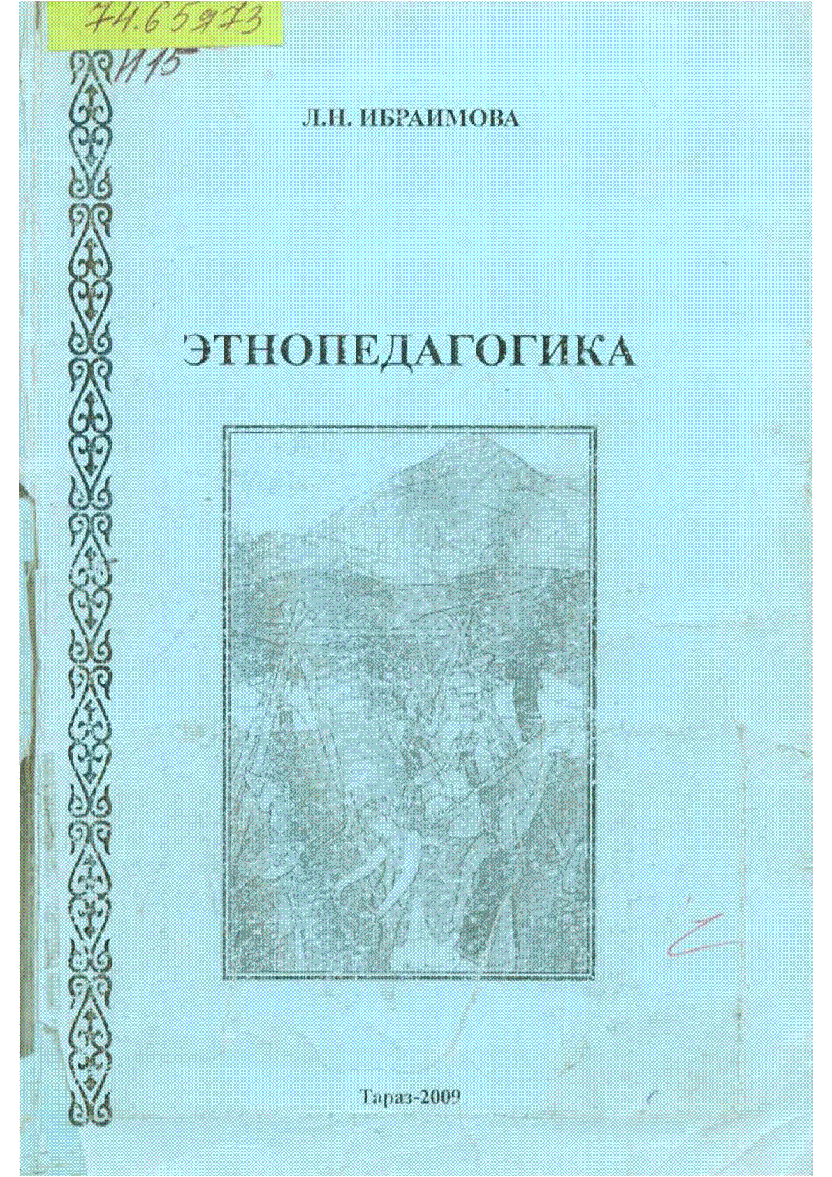 Этнопедагогика [Мәтін] : оқу құралы / Л. Н. Ибраимова ; ҚР білім және ғылым министрлігі, Тараз мемлекеттік педагогикалық институты... – Тараз : [б. ж.], 2009. - 62 б. . – Библиогр.: 54-61 б. . – 500 дана