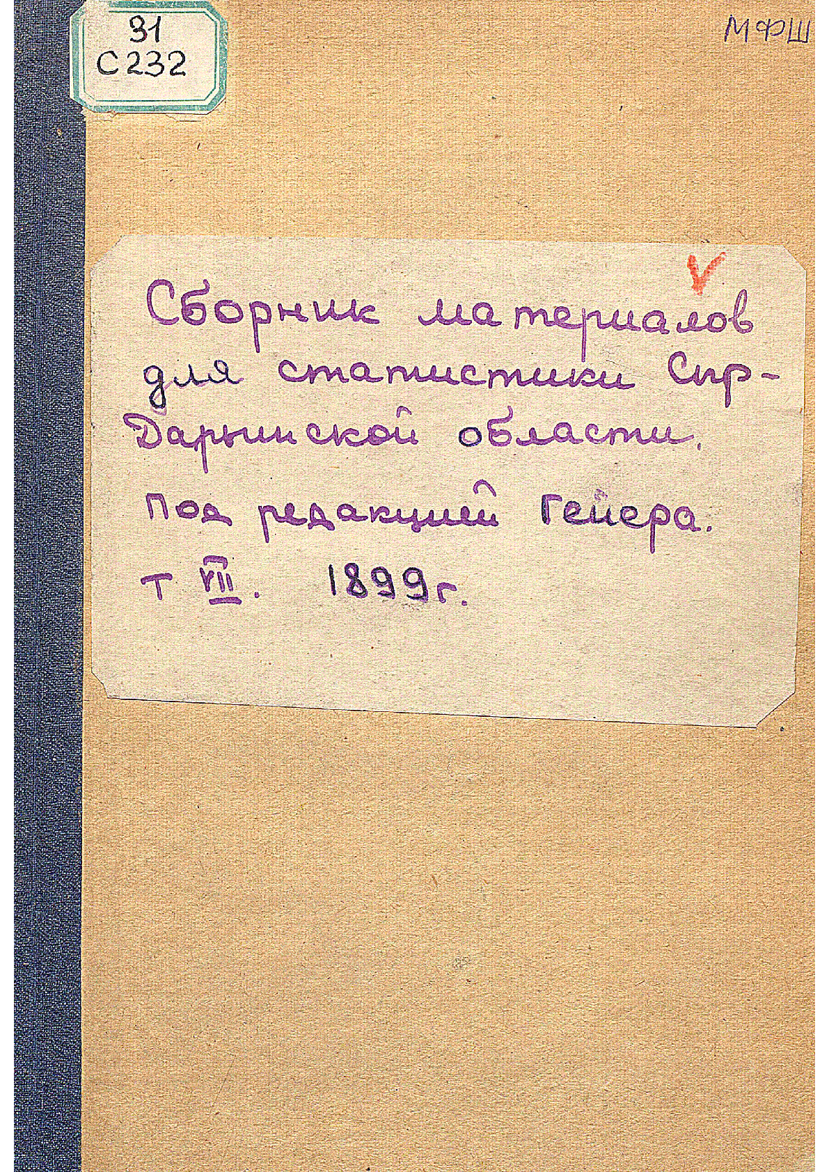 Сборник материалов для статистики Сыр- Дарьинской области [Текст] / ... – Ташкент : Б.и., 1899. - 152 стр. ; 7 . . – б.т.