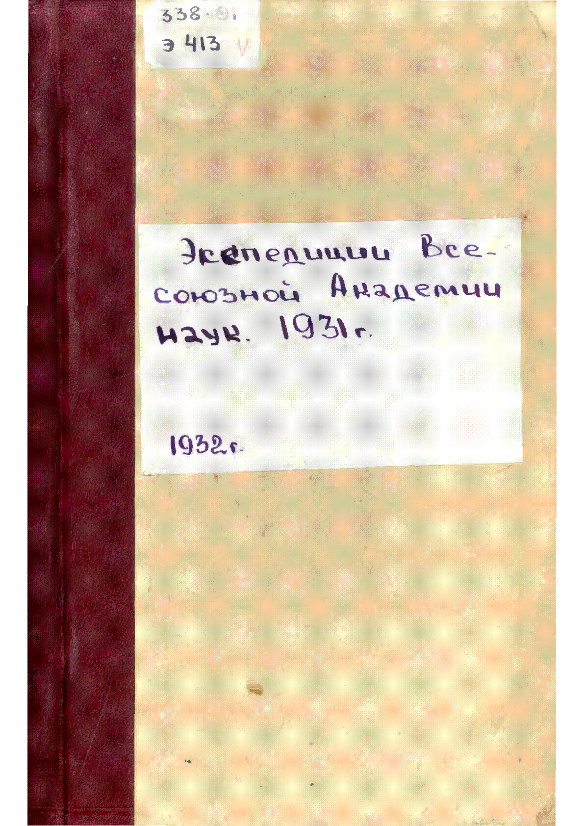 Экспедиции Всесоюзной Академии Наук 1931г. [Текст] : научно-популярные очерки. / ... – Ленинград : Издательство Академии наук СССР, 1932. - 378 с., иллюс.257; 26,5 х 17,5 см – (Академия наук СССР. Труды совета по изучению производительных сил.. . . – 4 000 экз. : б.ц.