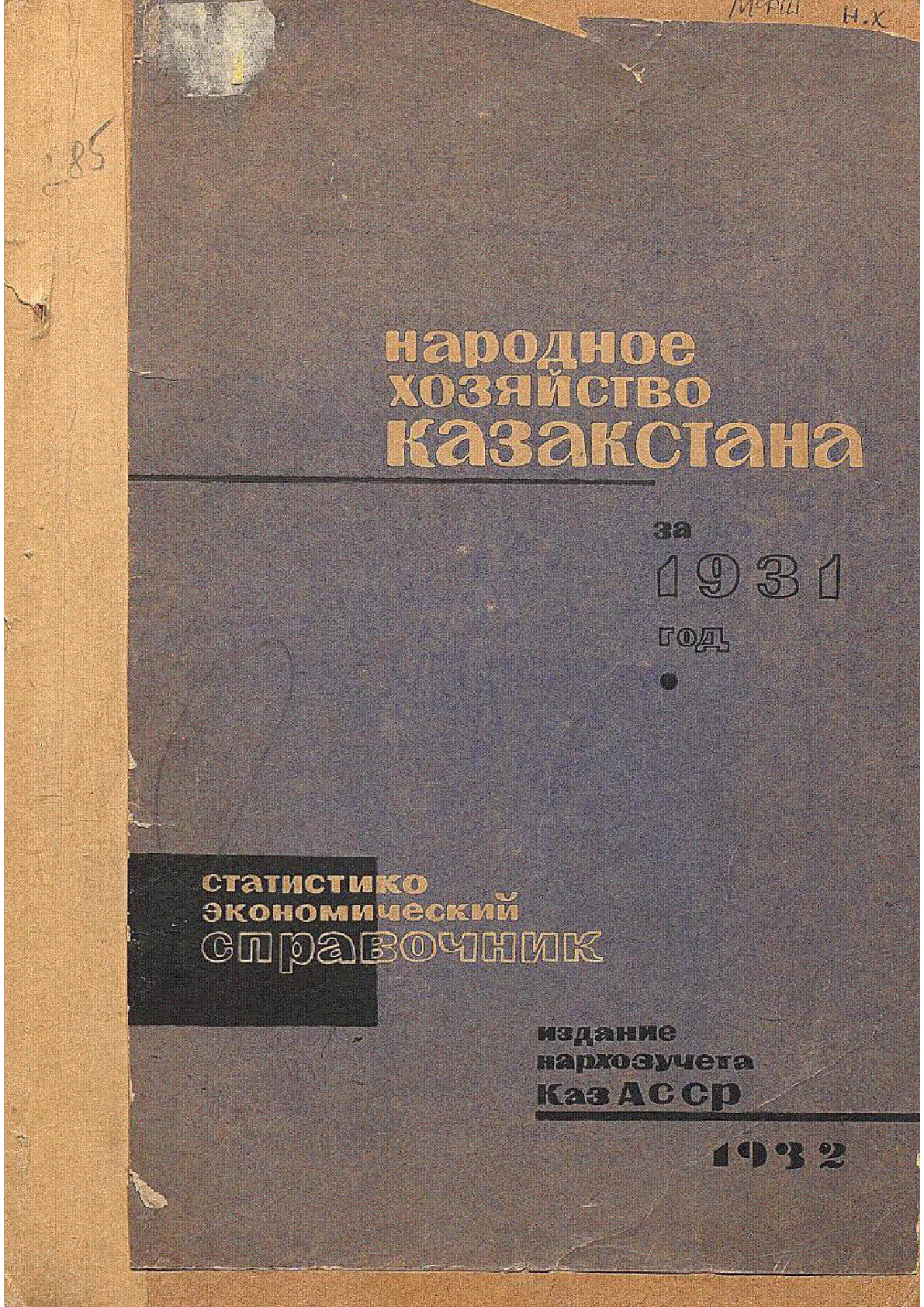 Народное хозяйство Казакстана за 1931 г. [Текст] : сатистико-экономический справочник / ... – Алма-Ата : Издание Управления НарХозУчета КазАССР, 1932. - 254 с. 30,5 х 21 см - Микрофиша. . . – б.т. : 1600 экз.
