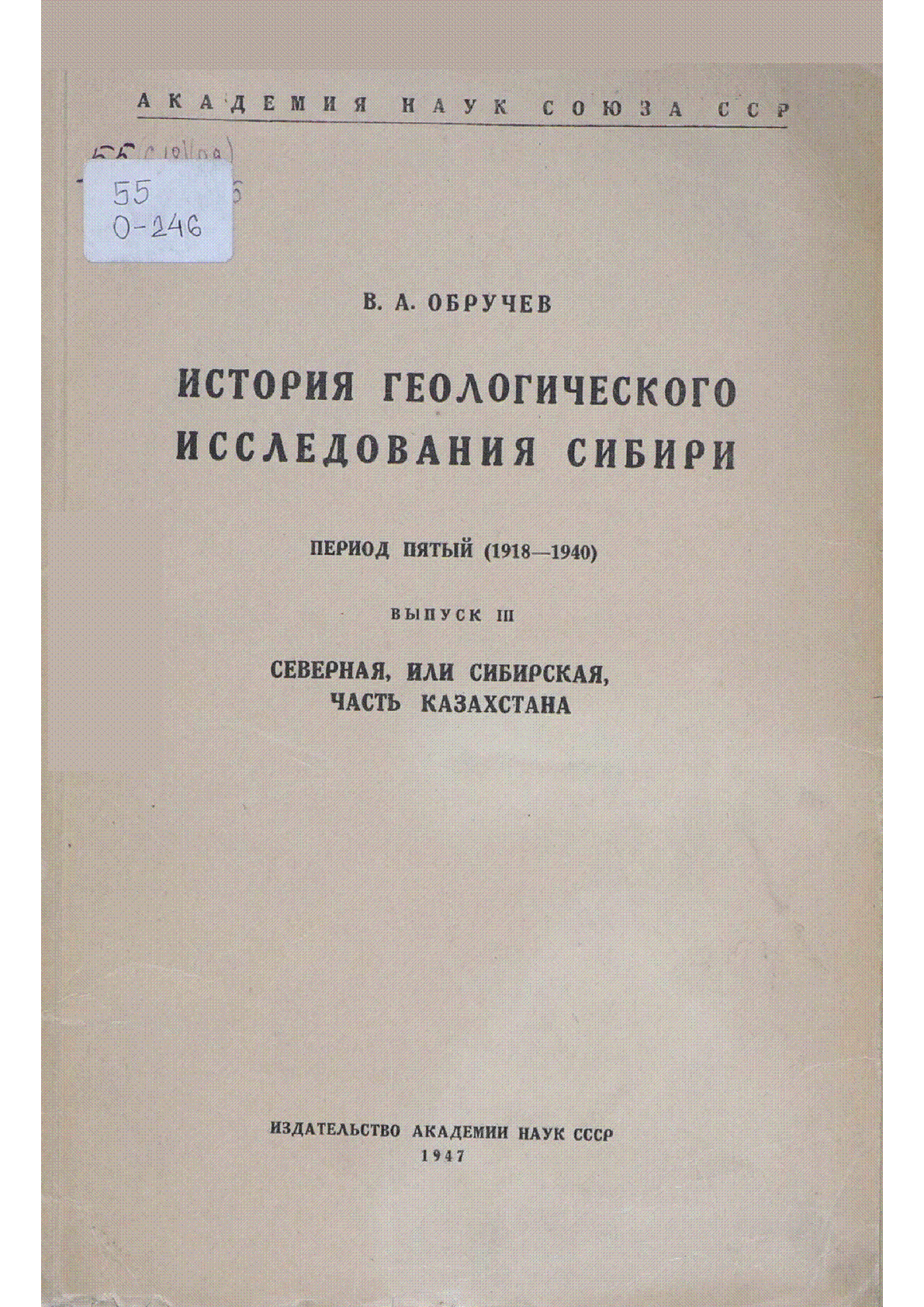 История геологического исследования Сибири [Текст] : Период пятый (1918-1940) / В. А. Обручев ; Акад. наук СССР .- Москва ; Ленинград : Изд-во Акад. наук СССР , 1947.– 2500 экз. . Библиогр.: с. 81-108 Вып. 3 . Северная, или Сибирская, Часть Казахстана– 108 с. : 30 тг.