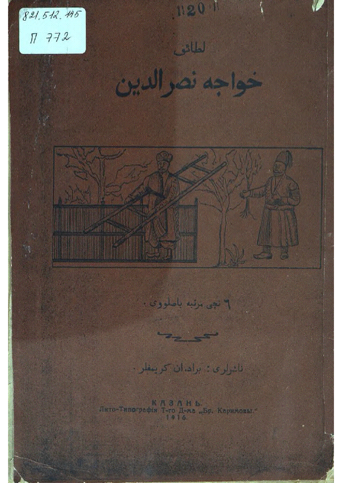 Притчи о Ходже Насреддине = لطاىْف خواجه نصر الدين [Text] / ... – Казань : Тип. "Бр. Каримовы", 1916. - 36 с., ил.; - Текст на татарском языке в арабской графике . . – [б. т.] : 10 тг.