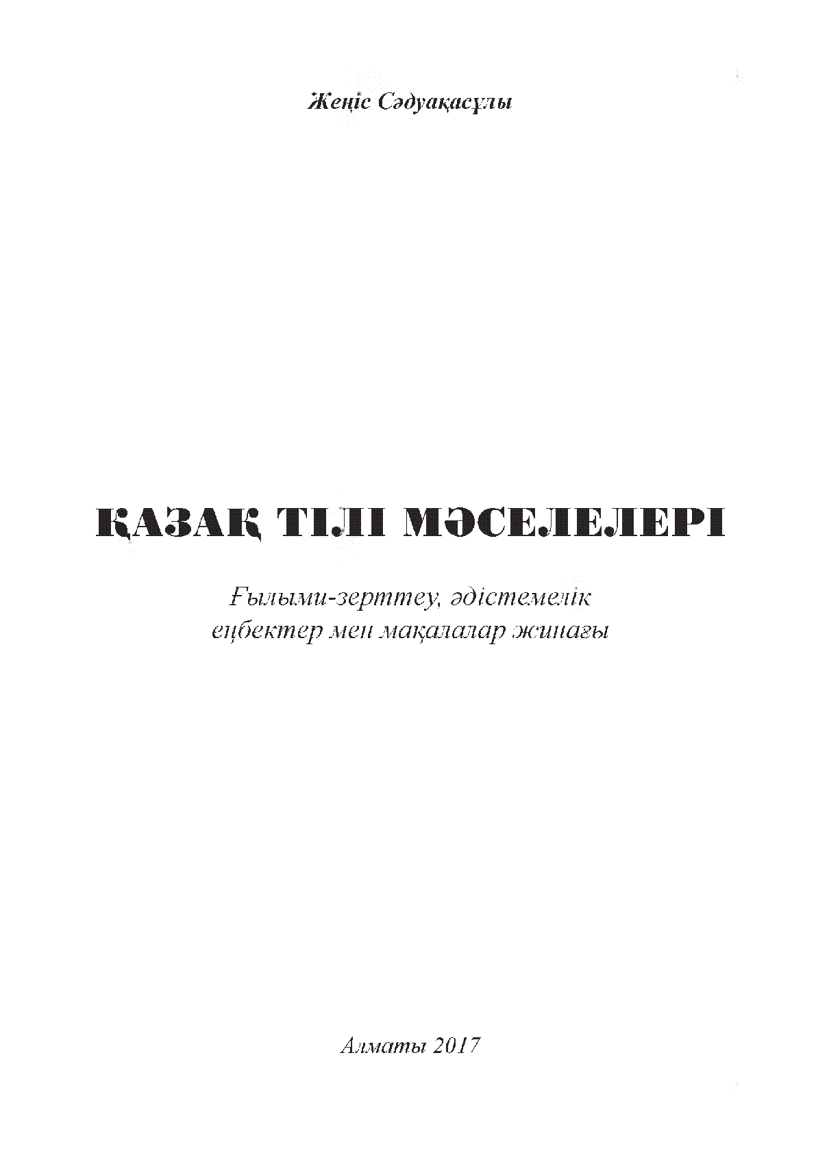 Қазақ тілі мәселелері [Мәтін] : ғылыми-зерттеу, әдістемелік еңбектер мен мақалалар жинағы / Ж. Сәдуақасұлы ; [ред. алқ.: Б. Қасым [ж. б.]]... – Алматы : [б. ж.], 2017. - Қорқыт Ата атын. Қызылорда мемлекеттік университетінің Ғылыми-әдістемелік кеңесі баспаға ұсынған . . – 500 дана