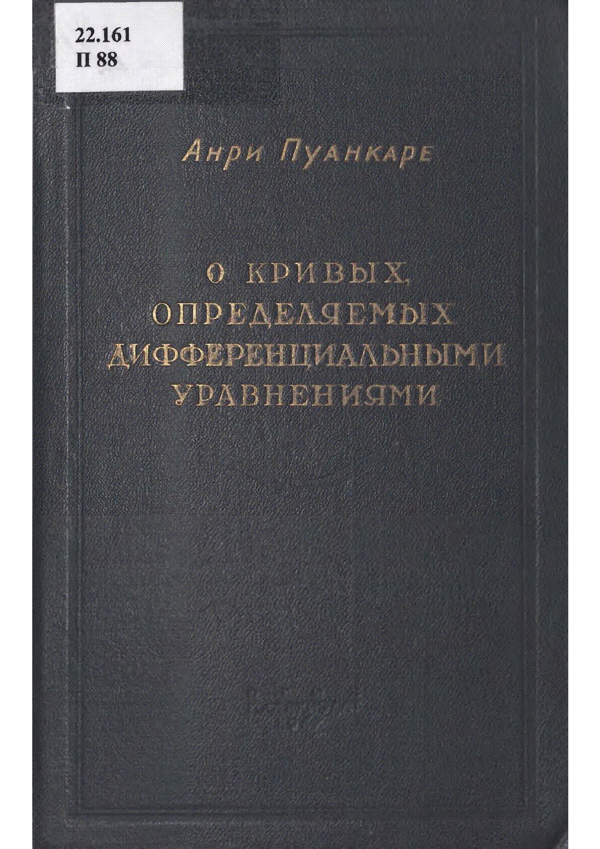 О кривых, определяемых диференциальными уравнениями [Текст] / А. Пуанкаре ; [пер. с фр. Е. Леонтович, А. Майер ; под ред. и с примеч. А. А. Андронова и с доп. Е. Леонтович, А. Майер В. Степанова [и др.]]... – Ленинград ; Москва : Гостехиздат, 1947. - 392 с.– (Классики естествознания. Математика. Механика. Физика. Астрономия. . . – 8000 экз.