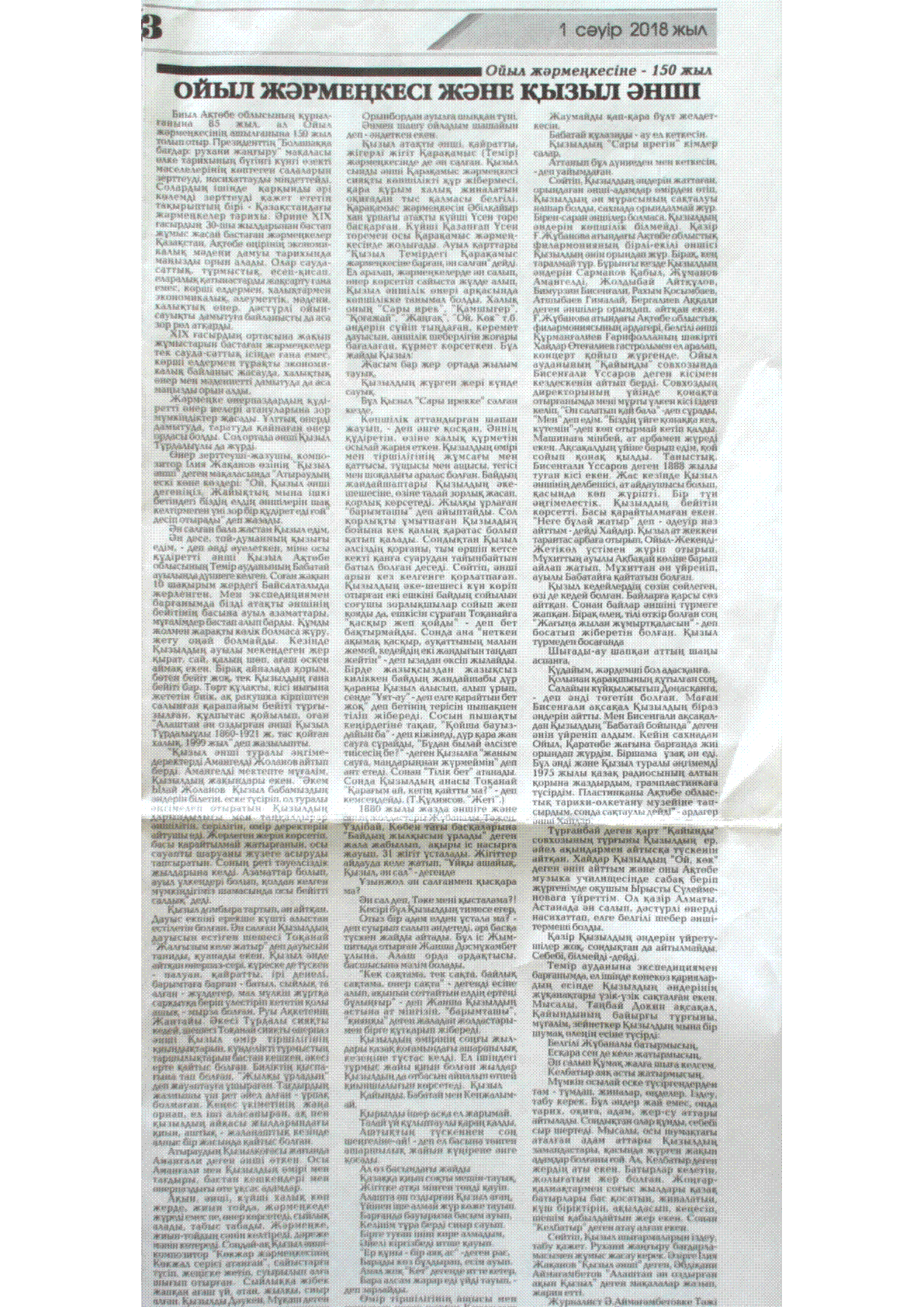 Құрманбек, Е. Ойыл жәрмеңкесі және Қызыл әнші [Мәтін] / Е. Құрманбек // Ақтөбе. - 2018. - 31 мамыр. ISSN<br>
