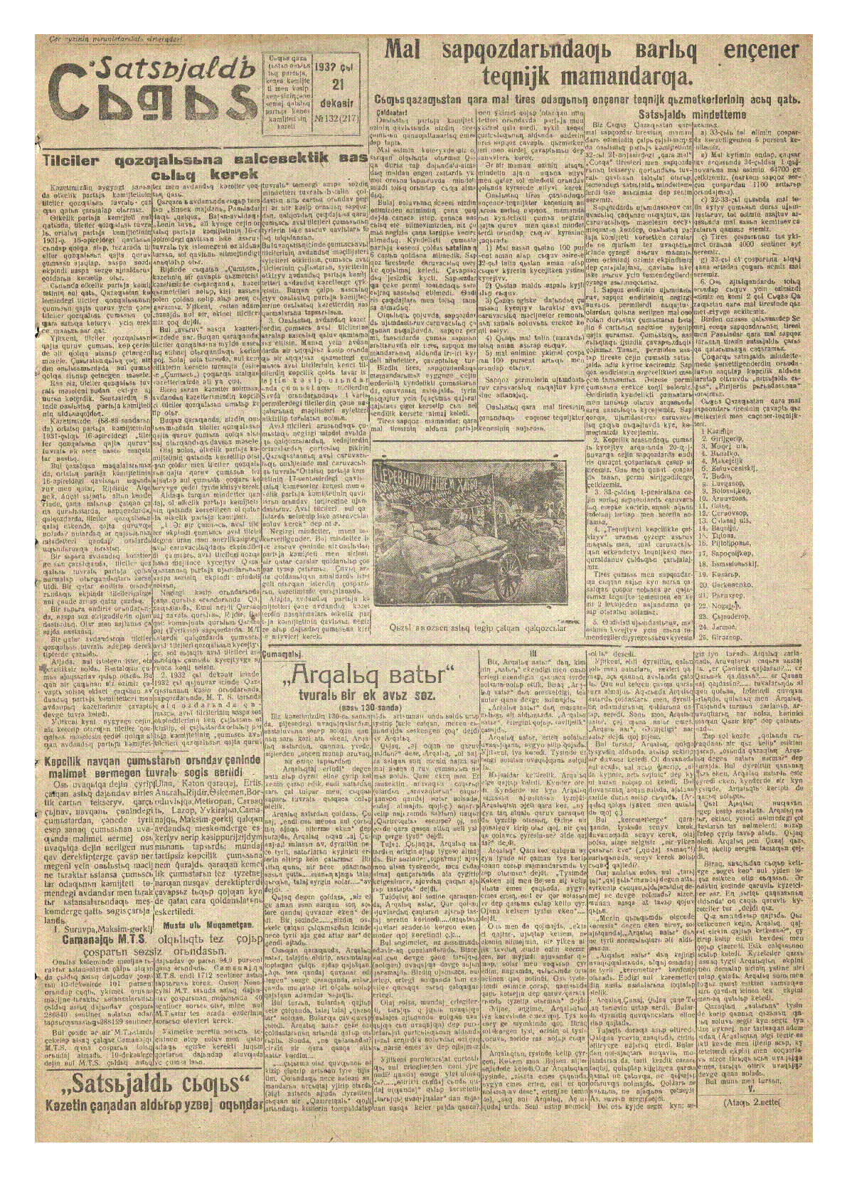 Социалды шығыс 1932, 21 декабрь = Satsьjaldь сьgьs [Мәтін] ; ред. Ж. Сәрсеков. – Семипалатинск : Тип. "Прииртышской Правды", 1932. - – Күнара шығады, (Құжатты көшіріп алып оқуыңызды сұраймыз). 1932. - № 132 (217). – 21 декабрь.