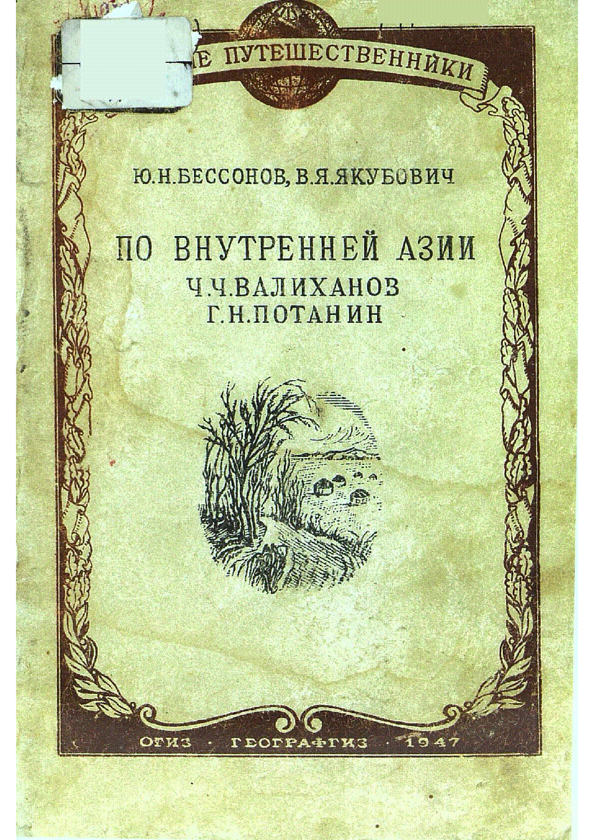 По внутренней Азии [Текст] : (Ч. Ч. Валиханов и Г. Н. Потанин) / Ю. Н. Бессонов В. Я. Якубович ; [под ред. В. В. Покшишевского и Н.Г. Фрадкина]... – Москва : Государственное изд-во географической литературы, 1947. - 76, [4] с., ил.;– (Русские путешественники. - Примеч.: с. 78 . – Библиогр.: с. 79 . – 50000 экз. : 30 тг.