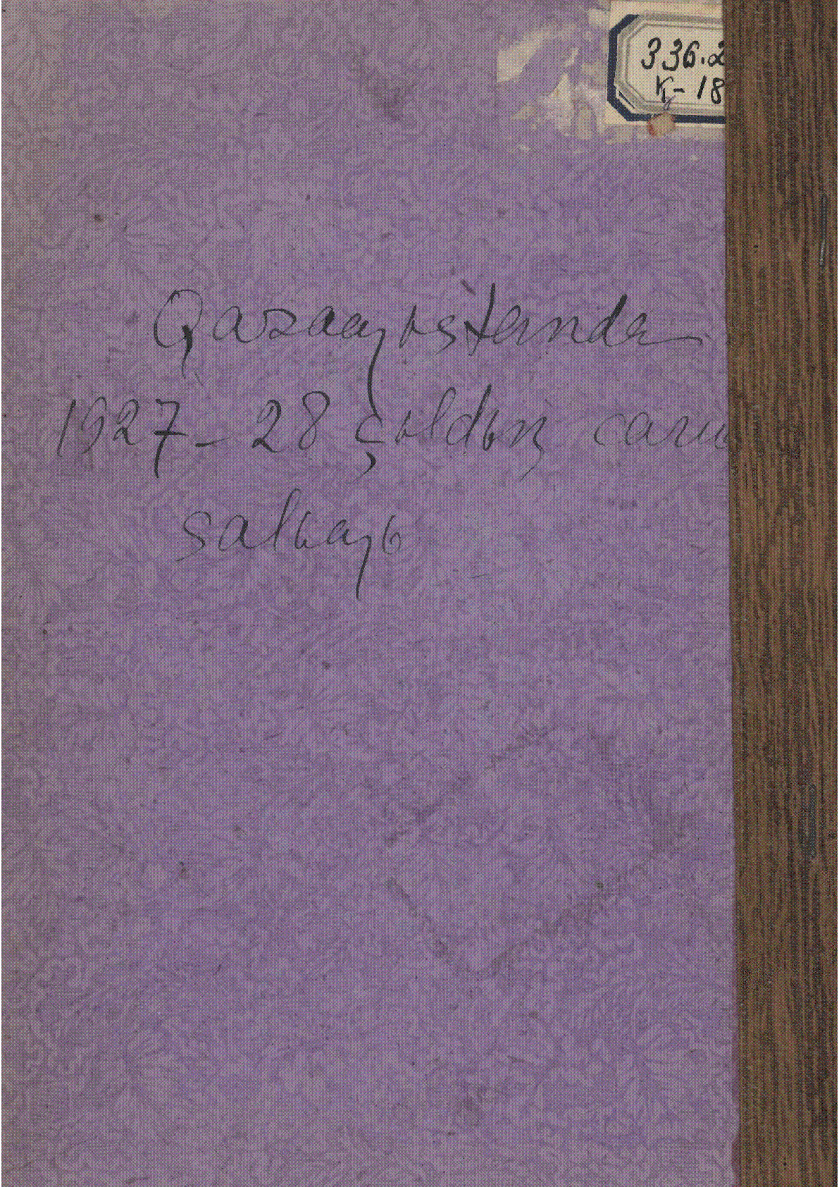 Қазақстанда 1927-1928 жылдың шаруа салығы = قازاعىستاندا 1927-1928 ىنشى جىلدىڭ شارىۋا سالىعى [Мәтін] : ауылдағы үгітшілерге, салық төлеушілерге, ауыл-поселке кеңестері мен болыстық кеңес комитеттерінің қызметкерлеріне және ақша мекемелерінің қызметкерлеріне жөн сілтеуіш / ... – Қызылорда : Қазақстан мемлекет баспасы, 1927. - 59 б. 25х16,5 см – (Қазақтың социалдық кеңес Республикасы. , – (Қазақстан ақша комиссарияты. - Мәтін араб графикасымен жазылған. . . – 8000 дана