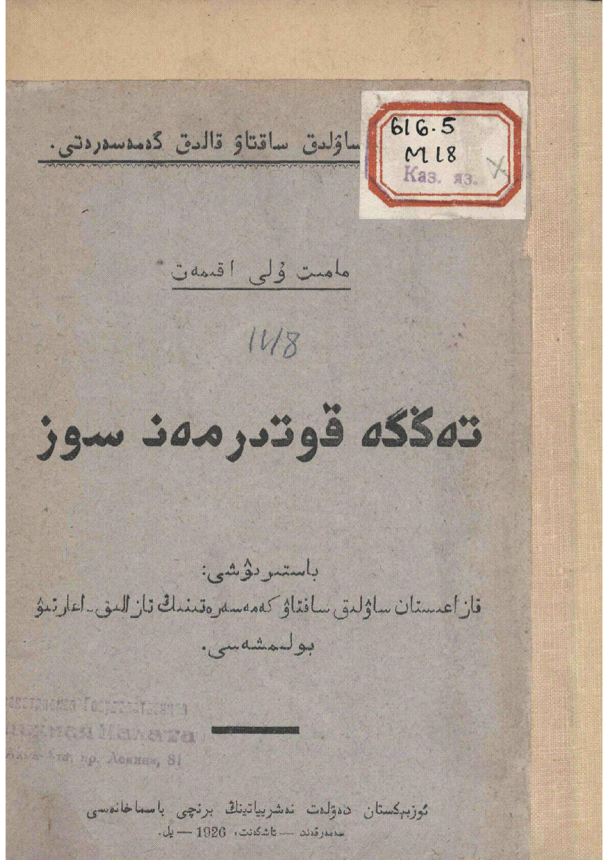 Денсаулық сақтау, Араб графикасымен басылған қазақ кітаптары, 1917-1945 жж. қазақ кітаптары, Денсаулық сақтау, Араб графикасымен басылған қазақ кітаптары, 1917-1945 жж. қазақ кітаптары
