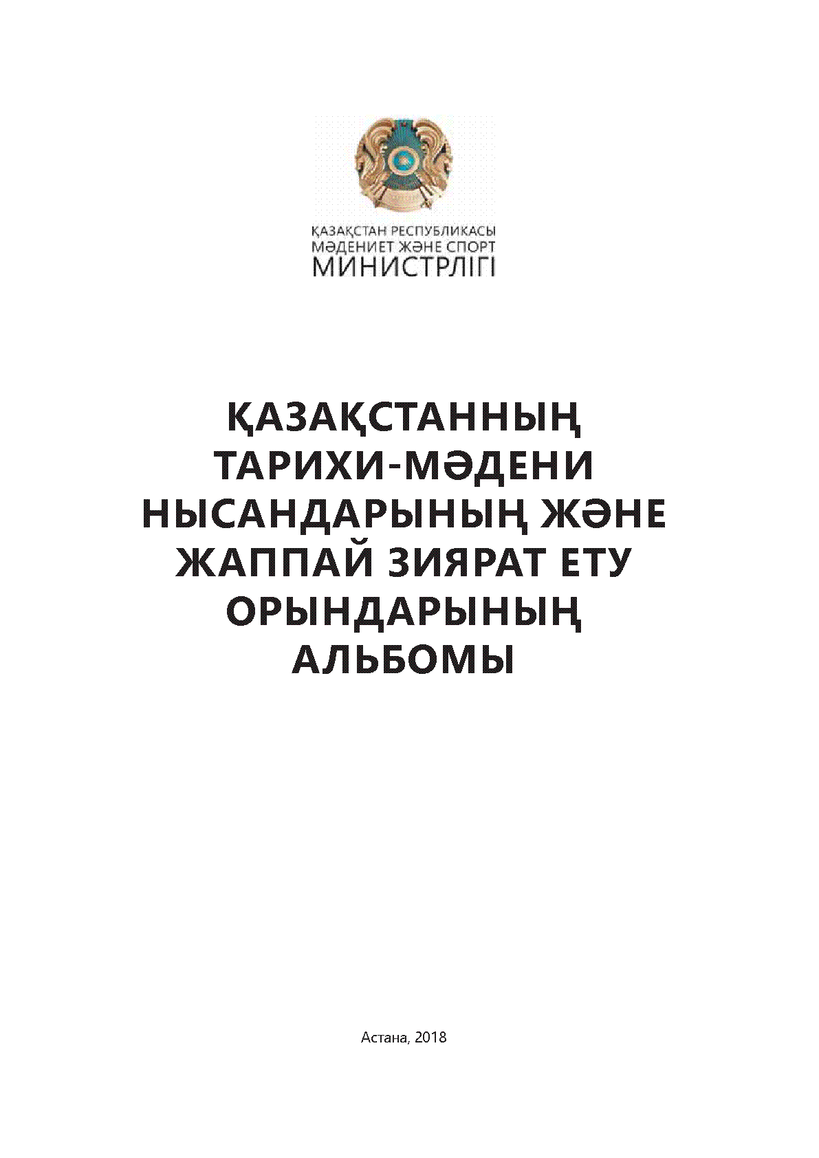 Қазақстанның тарихи-мәдени нысандарының және жаппай зиярат ету орындарының альбомы [Мәтін] / ; ҚР Мәдениет және спорт министрлігі, Қазақ ғылыми-зерттеу мәдениет институты ; [жоба авторы Т. Бекбергенов ; бас ред. А. Р. Хазбулатов]... – Астана : [б. ж.], 2018. - 495 б., суретті; . – Библиогр.: 490 б. . – 100 дана – ISBN 978-9961-23-485-9