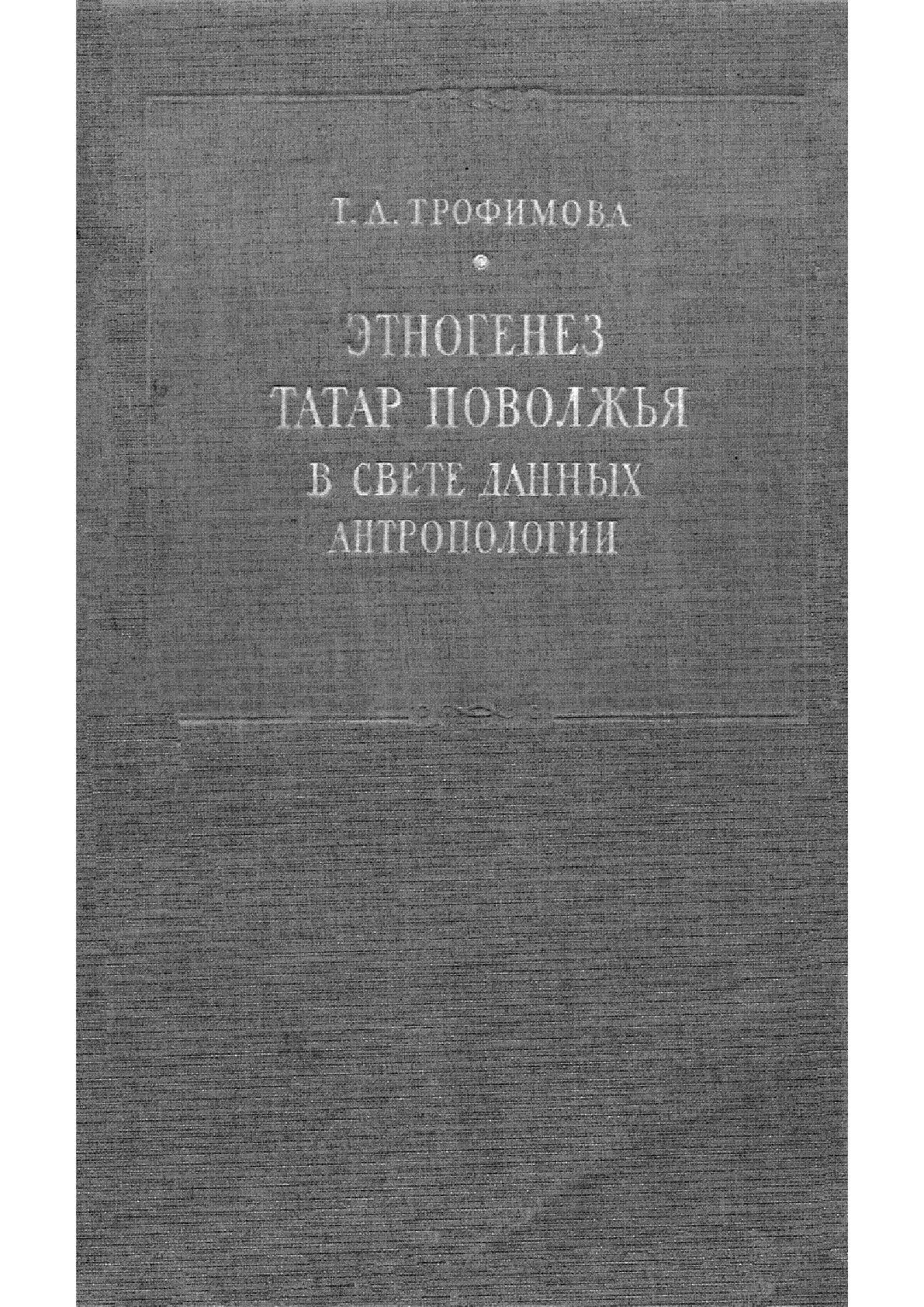 Этногенез татар Поволжья в свете данных антропологии [Текст] / Т. А. Трофимова ; Академия наук СССР... – Ленинград : Издательство академии наук СССР, 1949. - 262, [1] с., табл.;– (Труды института этнографии им. Н. Н. Миклухо-Маклая. / Академия наук СССР ; Т. VII : Новая серия). . – Библиогр.: с. 250-253 . – 2000 экз.