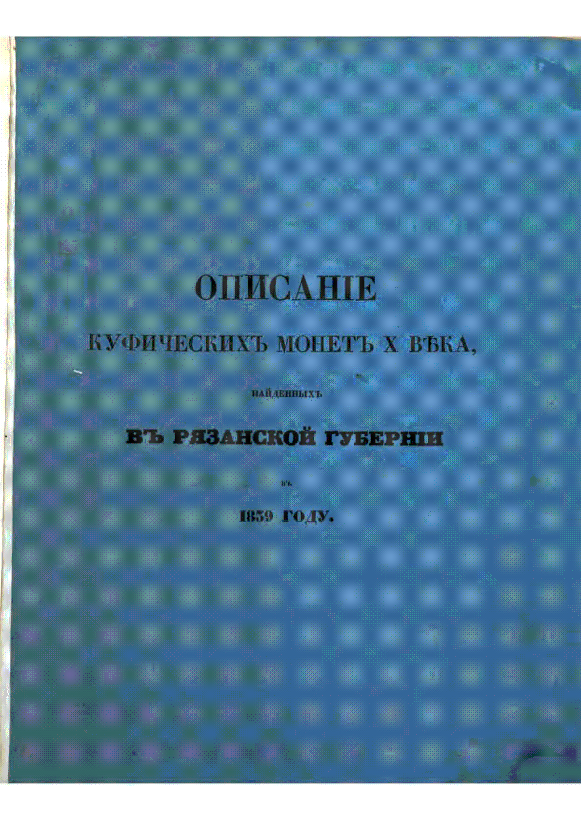 Описание куфических монет X века, найденных в Рязанской губернии в 1839 году [Текст] / В. В. Григорьев ; Одесское Общество Истории и Древностей ; [предисловие В. Григорьев]... – Санктпетербург : В типографии Императорской Академии наук, 1841. - [3], 52, [1] с. - Автор указан в конце предисловия. - На титульном листе: Издано иждивенцем Одесского Общества Истории и Древностей . . – [б. т.]