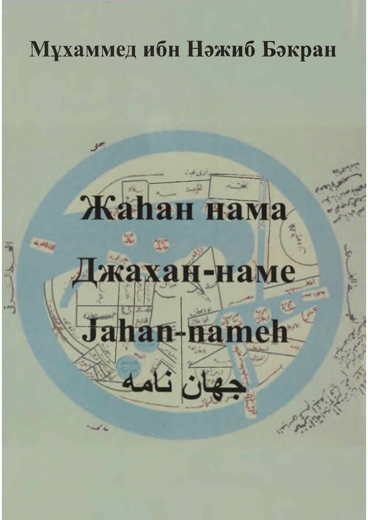 Жаһан нама (ХІІІ ғасыр) = Джахан-наме = Jahan-nemeh = جهان نامه [Мәтін] : 605 (Һижра камари) 1208 жыл / М. Ибн Нажиб Бакран ; Қазақстан Республикасы Білім және ғылым министрлігі, Әл-Фараби атындағы Қазақ ұлттық университеті, Л. Н. Гумилев атындағы Қазақ ұлттық университеті, Ш. Ш. Уәлиханов атындағы тарих және этнография институты ; орыс тілінен аударған: Б. Көмеков, қазақ тілі мен ағылшын тілдерінен аударған: Н. Тобыш... – Алматы : "Тоғанай Т" баспасы, 2021. - 412 б. - Мәтін қазақ, орыс, араб тілдерінде . . – 1000 дана – ISBN 978-601-7853-53-2