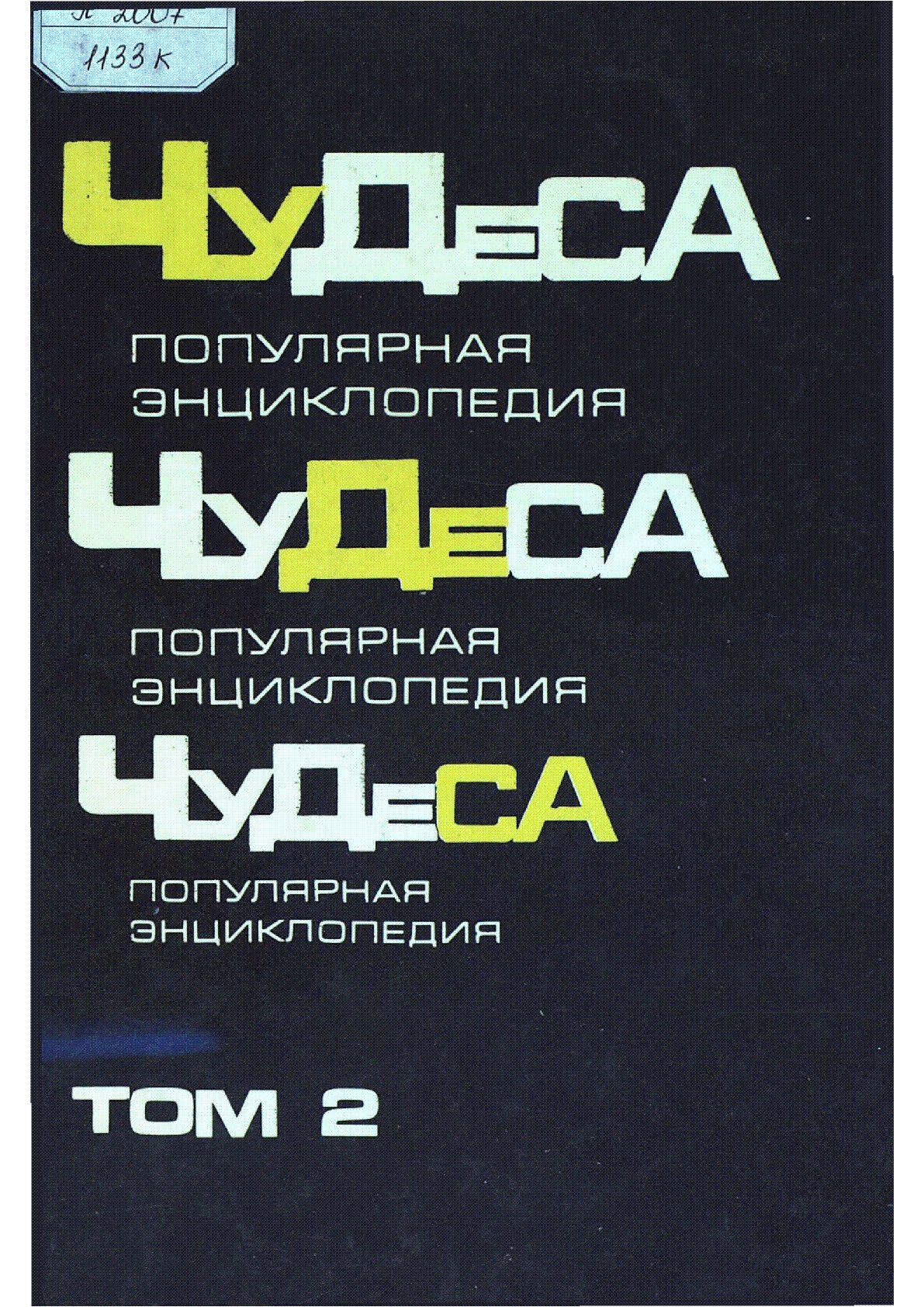Чудеса [Текст] : популярная энциклопедия Мезенцев, Владимир- Алма-Ата : Қазақ энциклопедиясы , 1992. – 5-89800-046-1(Т.2)(в пер.), 5-89800-045-3 Т. II, кн. 3, 4 . Природа и человек. В мире иллюзий– 368 с., ил. .