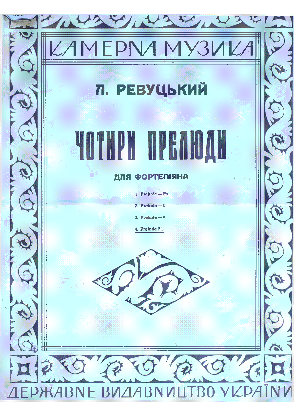 Чотири прелюди [Ноты] [Ноты] : для фортепиано / Ревуцький, Л. ... – Харьков : Державне видавництво Украiни, 1927. - 7 с., ноты;– (Камерна музика. . . – 1 000 экз. : 1 тг.