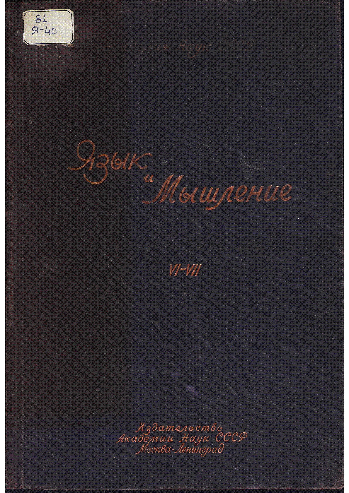 Язык и мышление [Текст] : Le Langage et la metnalite ; Академия наук Союза Советских Социалистических Республик ; Институт языка и мышления им. Н. Я. Марра ; ред. И. И. Мещанинов- М. ; Л. : Изд-во АН СССР , 1936.– [б. т.] . (в пер.) Т. 6-7 .– 345 с., табл. . (в пер.) : 40 тг.