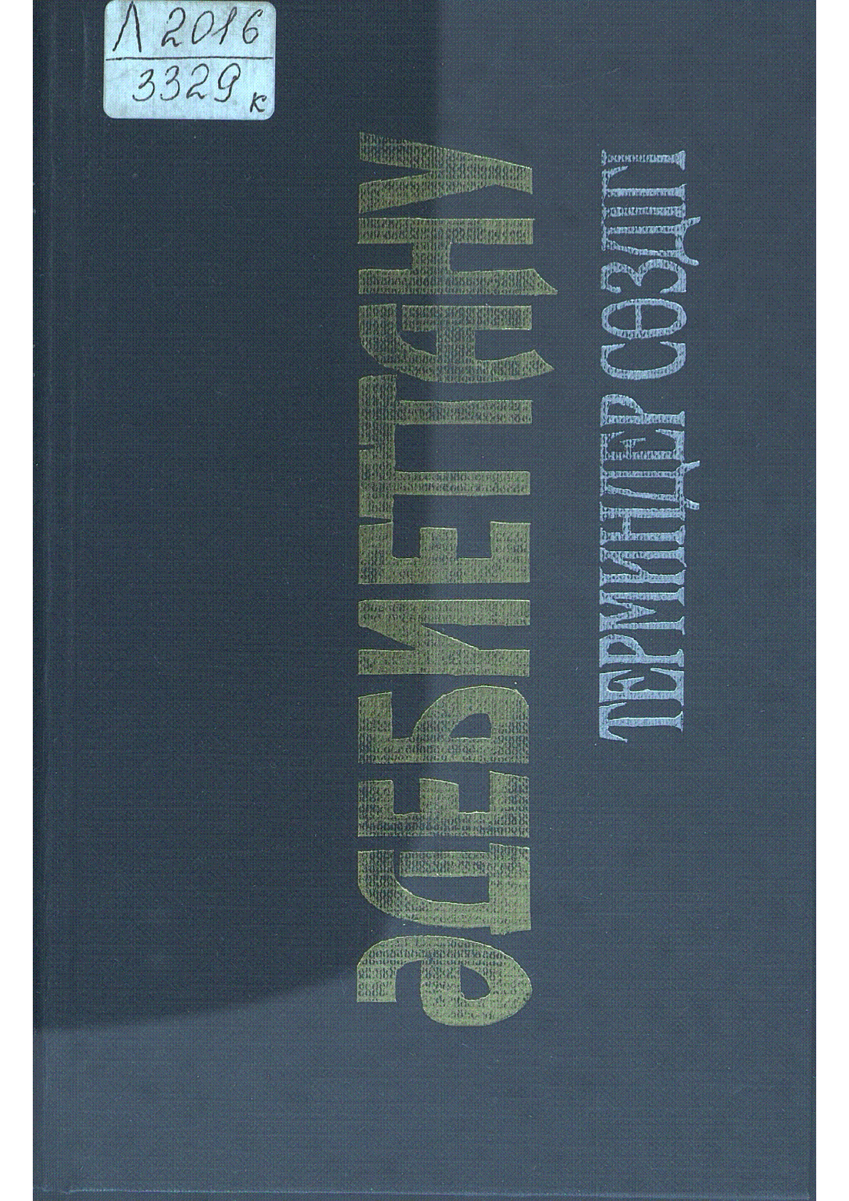 Әдебиеттану. Терминдер сөздігі [Мәтін] / ; [құраст.: З. Ахметов, Т. Шаңбаев]. – 2-бас. .. – Алматы : Ана тілі, 1998. - 383 б. - Зәки Ахметовтың қоры. - Шора Сарыбаев қоры . . – 5000 дана – 5-630-00567-7 (мұқ.) : 50 тг.