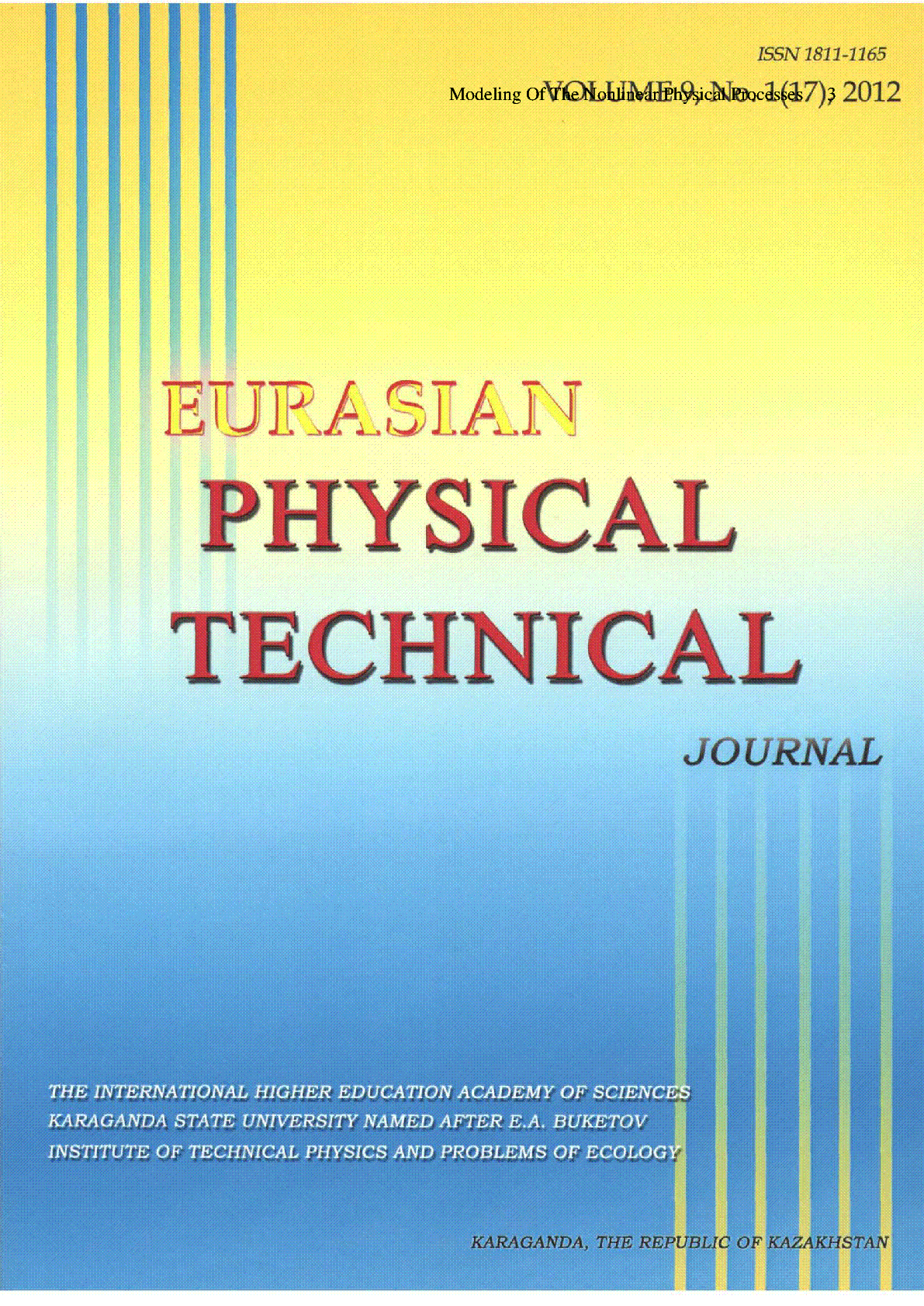 Eurasian physical technical journal [Text] ; editor E. K. Kubeev; consult. of transl. K. E. Akhmerova [et.al.]; The international higher education academy of sciences; Karaganda state university named after E. A. Buketov; Institute of technical physics and problems of ecology. – Karaganda : [s. n.], 2012. - – Guartelry journal. – 1811-1165. 2012, №1(17), Volume 9.