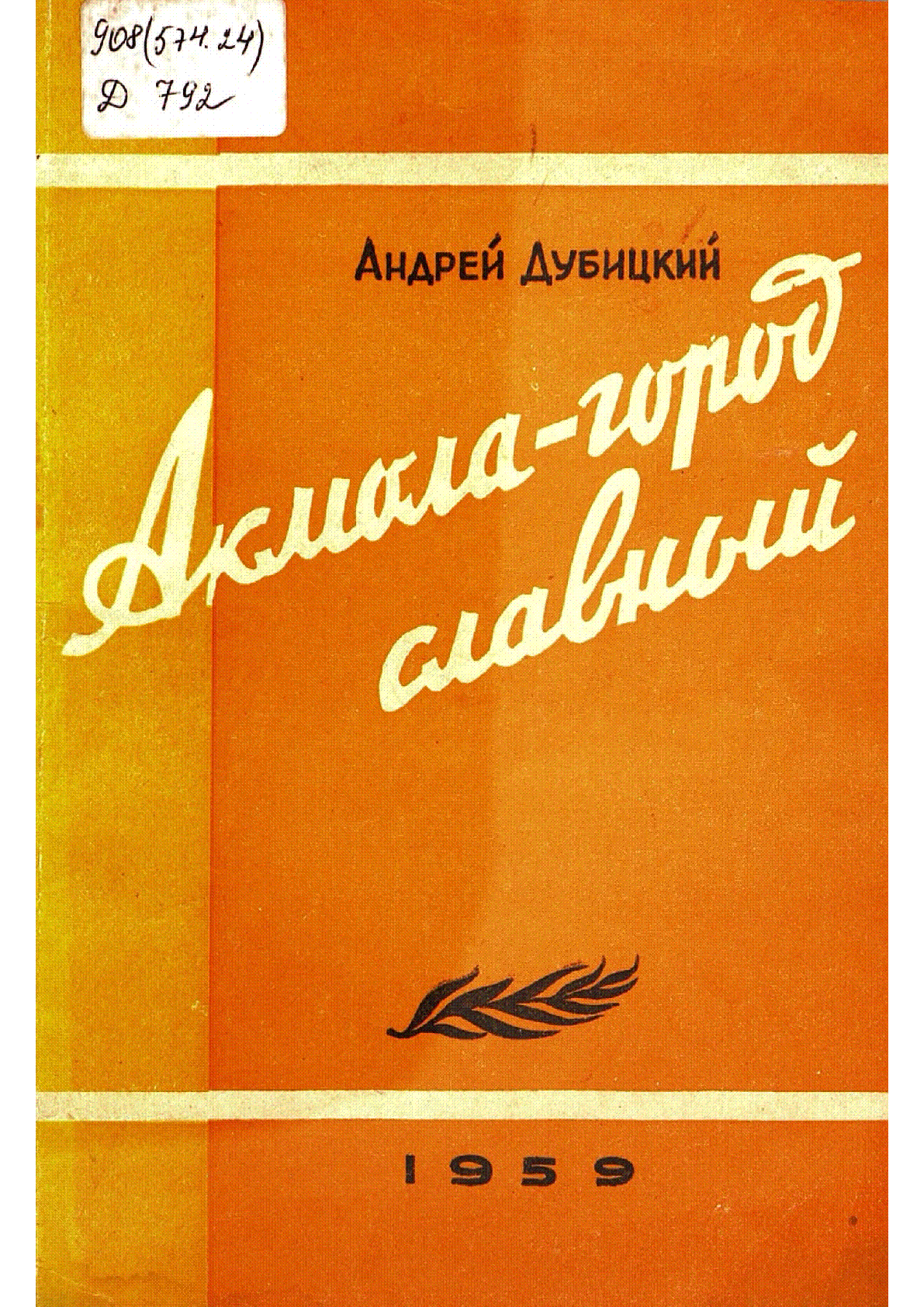 Акмола - город славный [Текст] : исторический очерк / А. Дубицкий ... – Акмолинск : Областное изд-во, 1959. - 126, [1] с., ил.; . . – 10000 экз. : 50 тг.