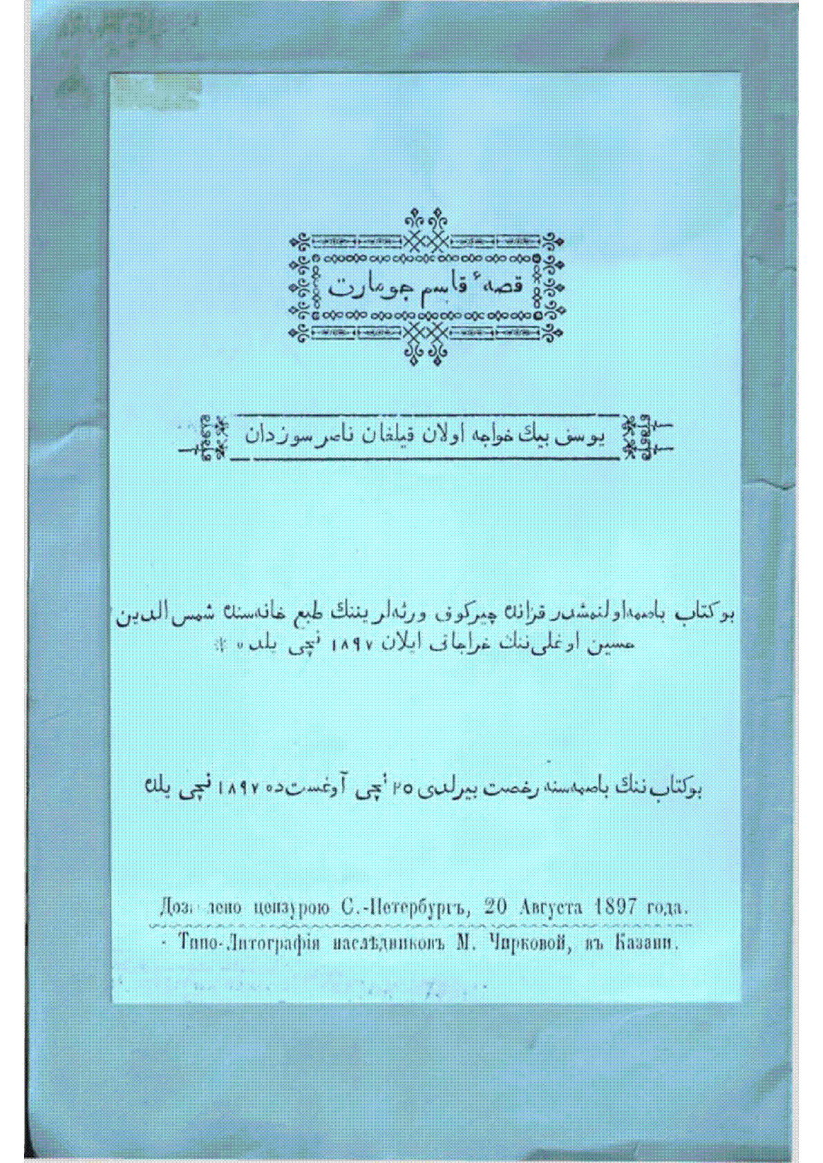قصه قاسم جومارت = Қисса Қасым Жомарт [Text] : Дастан / ... – Қазан : Тип. наследников М. Чирковой, 1897. - 50 б. - Мәтін араб қарпімен түрік тілінде . . – [т. ж.] : 20 тг.
