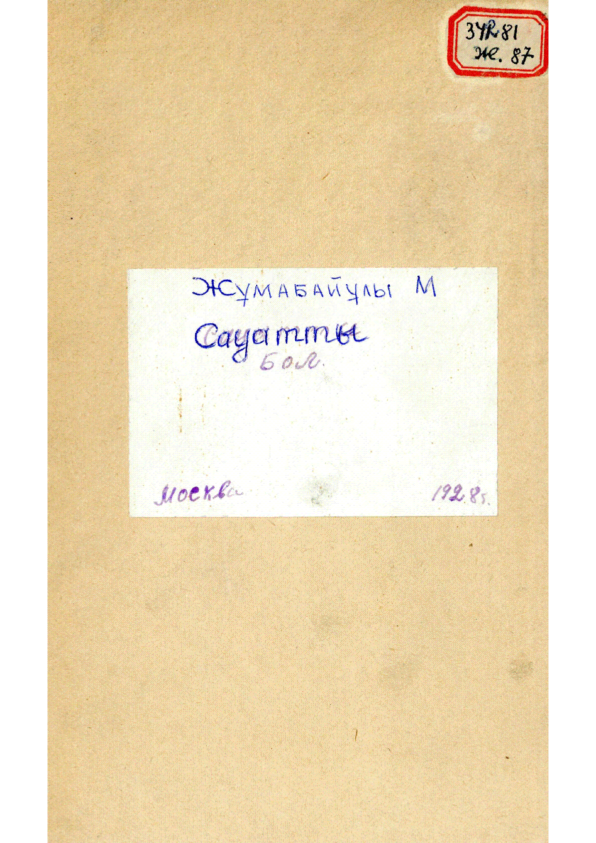 Сауатты бол = ساﯟاتتى بول [Мәтін] : Қазақстан білім ордасы ұнатқан / М. Жұмабайұлы ; ред. Кәрім Тоқтабайұлы. – Түзетіліп, жаңғыртылып 3-бас. .. – Москва : Кеңес одағындағы елдердің кіндік баспасы, 1928. - 96 б., суретті; 27х18 см - Микрофиша, - Мәтін араб графикасымен жазылған . . – 20000 дана
