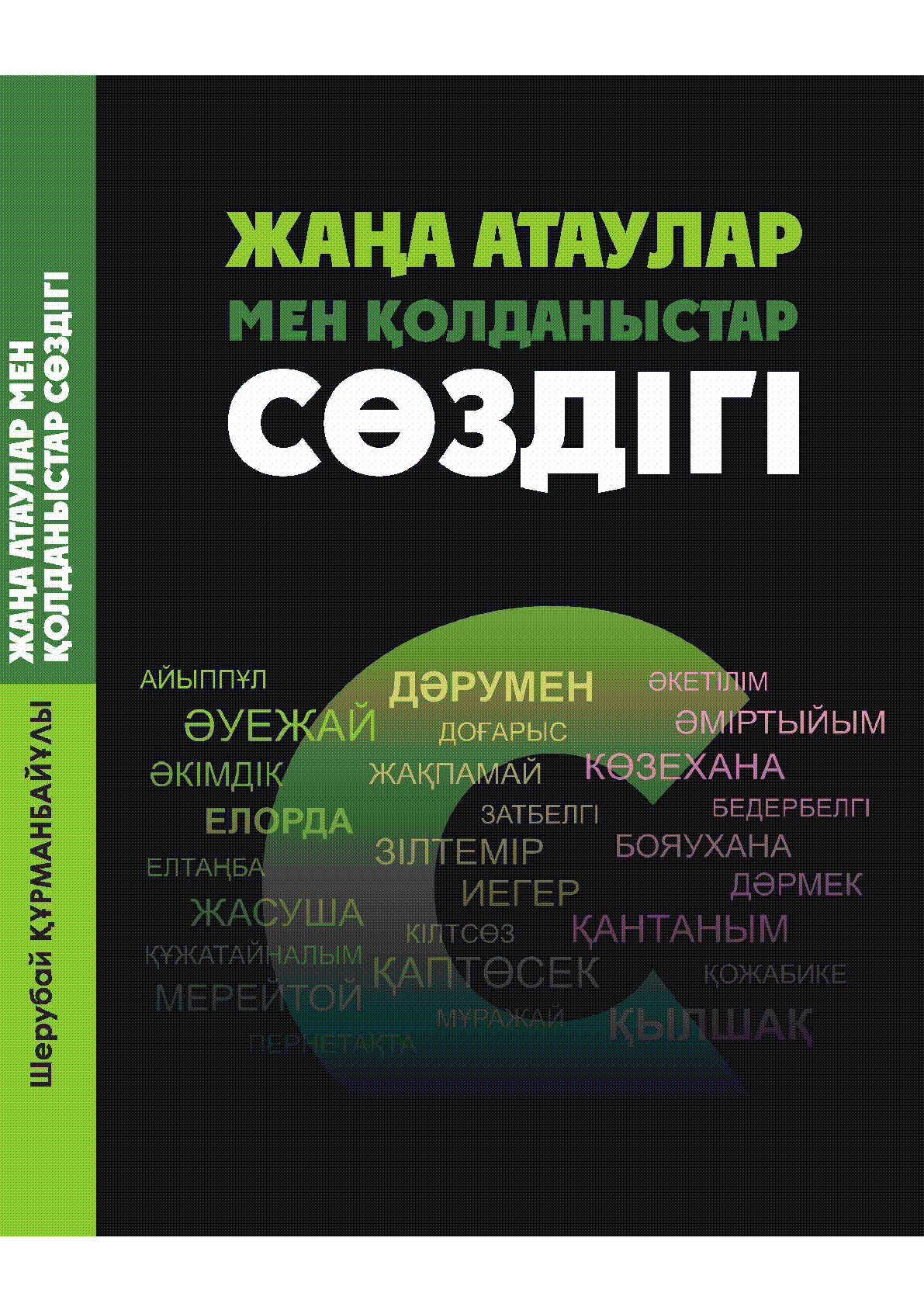 Жаңа атаулар мен қолданыстар сөздігі [Мәтін] / Ш. Құрманбайұлы ... – Алматы : [б. ж.], 2023. - 494, [1] б. - Қазақстан Республикасы Мәдениет және спорт министрлігі "Мәдениет және өнер саласындағы бәсекелестікті жоғарылату, қазақстандық мәдени мұраны сақтау, зерделеу мен насихаттау және архив ісінің іске асырылу тиімділігін арттыру" бағдарламасы, "Әдебиеттің әлеуметтік маңызды түрлерін сатып алу, басып шығару және тарату" кіші бағдарламасы бойынша жарық көрді . . – 3000 дана – ISBN 978-601-80433-4-5 (мұқ.) : 3214, 29 тг.