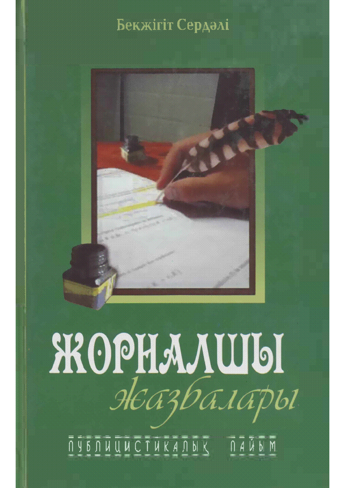 Жорналшы жазбалары [Мәтін] : публицистикалық пайым : мақалалар / Б. Сердәлі ... – Алматы : Нұрлы Әлем, 2011. - 232 б. . . – 1000 дана – ISBN 978-601-205-190-2