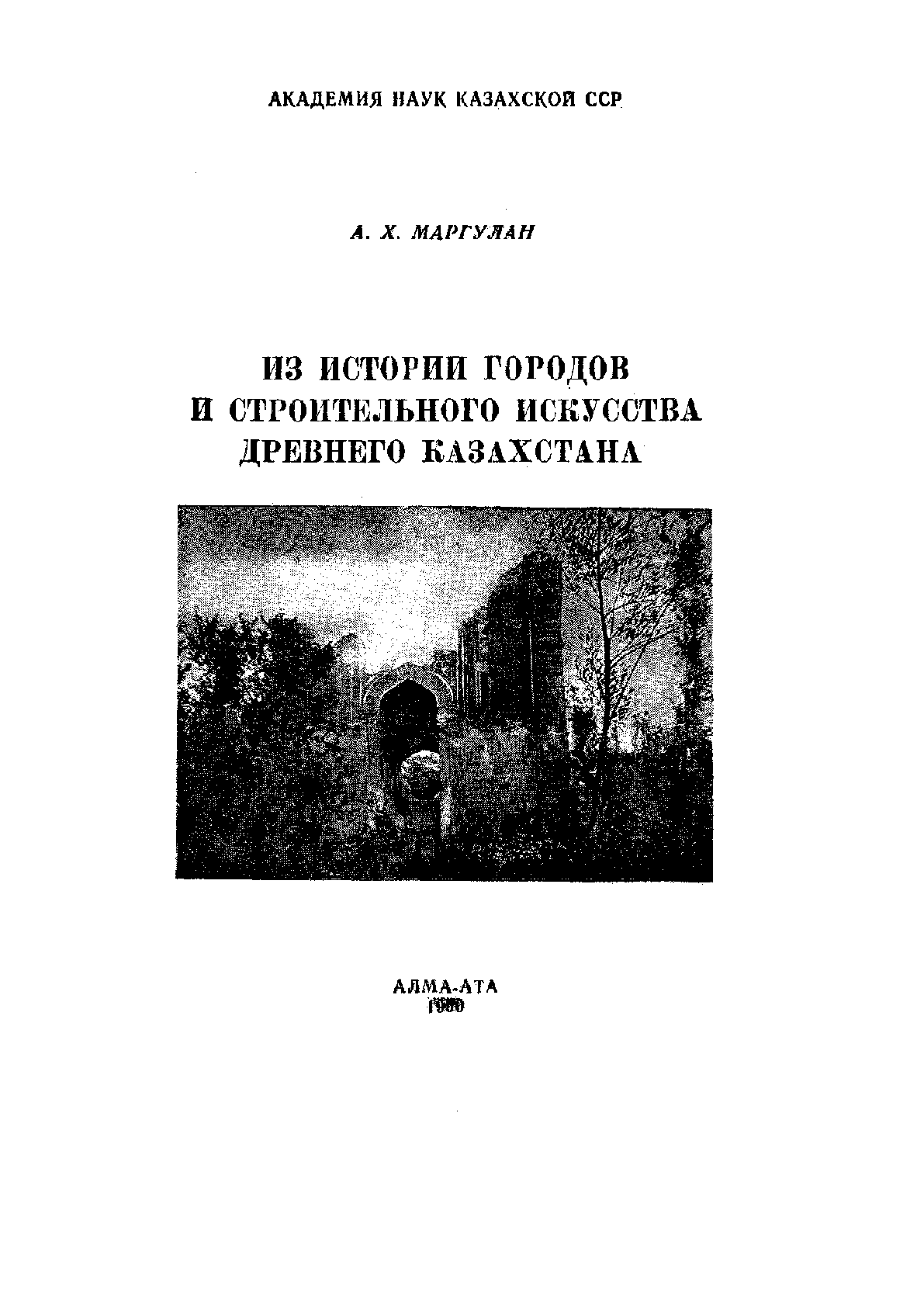 Из истории городов и строительного искусства древнего Казахстана [Текст] / А. Х. Маргулан ... – Алма-Ата : Изд-во АН КазССР, 1950. - 121, [1] c., ил.; . – Библиогр. в сносках . – 3000 экз. : 50 тг.