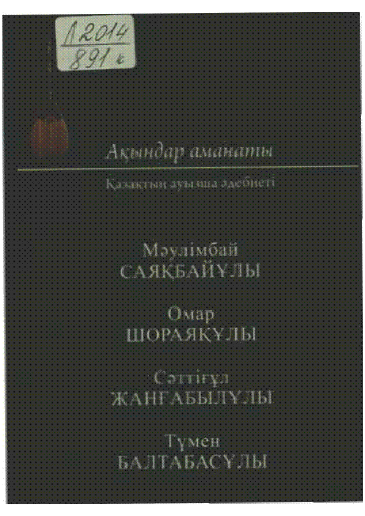 Шығармалары [Мәтін], [Text] / М. Саяқбайұлы Балтабасұлы , Т. Шораяқұлы, О. С. Жаңғабылұлы ; Абай атындағы Қазақ ұлттық педагогикалық университеті, Жамбылтану және халық ақындары ғылыми-зерттеу институты ; редакция алқасы: С. Пірәлиев, С. Қирабаев, Т. Кәкішев [ж. б.]... – Алматы : Нұрлы Press.kz, 2014. - 283, [4] б.– (Ақындар аманаты. : Қазақтың ауызша әдебиеті/ Б. Ыбырайым- Қазақстан Республикасы Мәдениет министрлігі "Әдебиеттің әлеуметтік маңызды түрлерін басып шығару" бағдарламасы бойынша жарық көрді. - Мырзатай Жолдасбеков қоры . . – 2000+10 дана – ISBN 978-601-7572-01-3 (мұқ.) : 669, 65 тг.