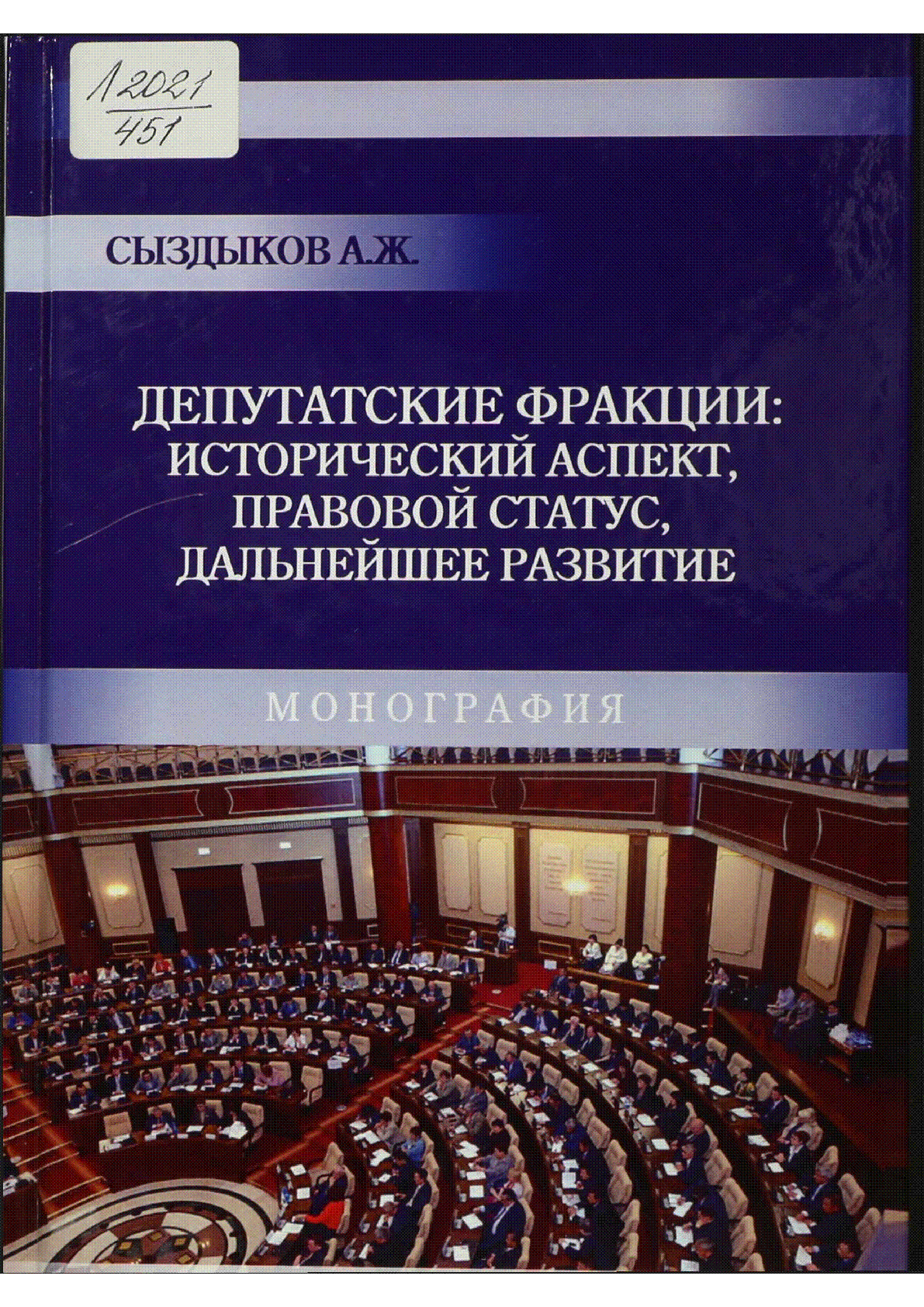 Депутатские фракции: исторический аспект, правовой статус, дальнейшее развитие = [Текст] : (монография) / А. Ж. Сыздыков ... – Алматы : Лантар Трейд, 2020. - 203 с. . – Библиогр.: с. 123-131, библиогр. в подстроч. примеч. . – 500 экз. – ISBN 978-601-7969-43-1 (в пер.) : 10 тг.