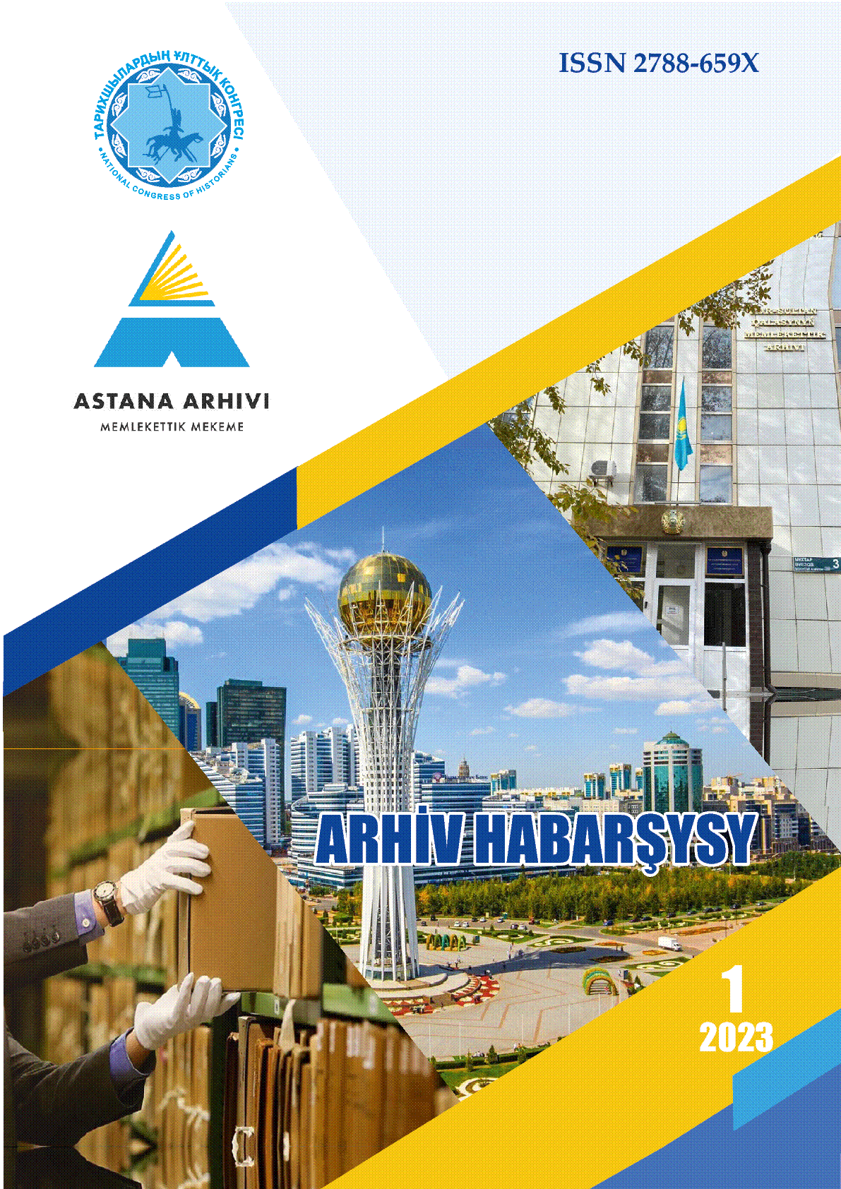 Архив хабаршысы [Мәтін] : ғылыми-көшілік, ақпараттық-әдістемелік журнал ; [бас ред. Б. Ж. Туребеков ; ред. кеңес төрағасы: Е. Б. Сыдықов ; ред. кеңес мүшелері: М. Қ. Қойгелдиев [ж. б.] ; "Астана қаласының мем. архиві" мем. мекемесі ; Қазақстан тарихшыларының Ұлттық конгресі]. – Астана : [б. ж.], 2023. - .– 1000 дана.– 2021 жылдан бастап тоқсан сайын шығады. – ISSN 2788-659X. №1, 2023. - 1000 дана
