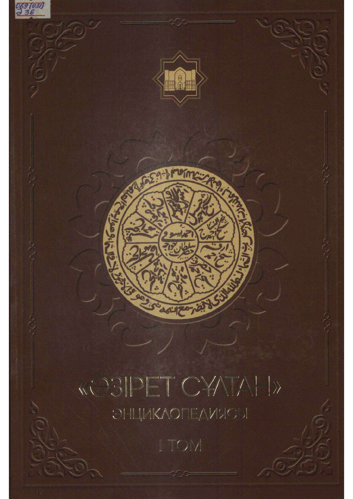 "Әзірет Сұлтан" энциклопедиясы [Мәтін] ; "Әзірет Сұлтан" мемлекеттік тарихи-мәдени қорық музейі ; [бас ред. Н. Қ. Ахметжанов ; редакция мүшелері: Қ. Ергөбек [ж. б.]] ; .- Түркістан : Алтын Кітап баспасы , 2021.– 1000 дана . – ISBN 978-601-7988-29-6 (мұқ.) 1-том . А-Я– 383 б., суретті . (мұқ.) : 0 тг