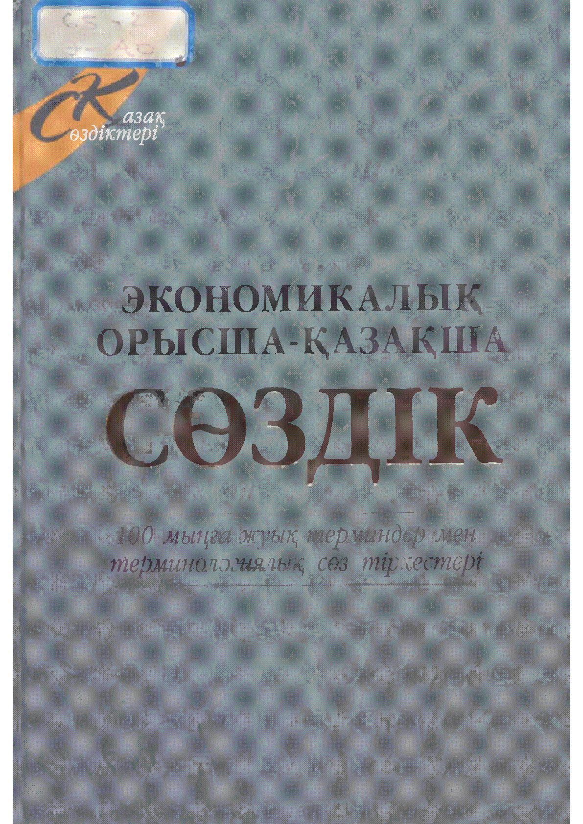 Экономикалық орысша-қазақша сөздік = Экономический русско-казахский словарь [Мәтін] : 100 мыңға жуық терминдер мен терминалогиялық сөз тіркестері / ; жалпы редакциясын басқарған А. Қошанов ; Қазақстан Республикасының Мәдениет және ақпарат министрлігі, Тіл комитеті... – Алматы : Дайк-Пресс, 2008. - 1163 б.– (Қазақ сөздіктері. . . – 20000 дана – ISBN 9965-798-98-2 (мұқ.) : 700 тг.